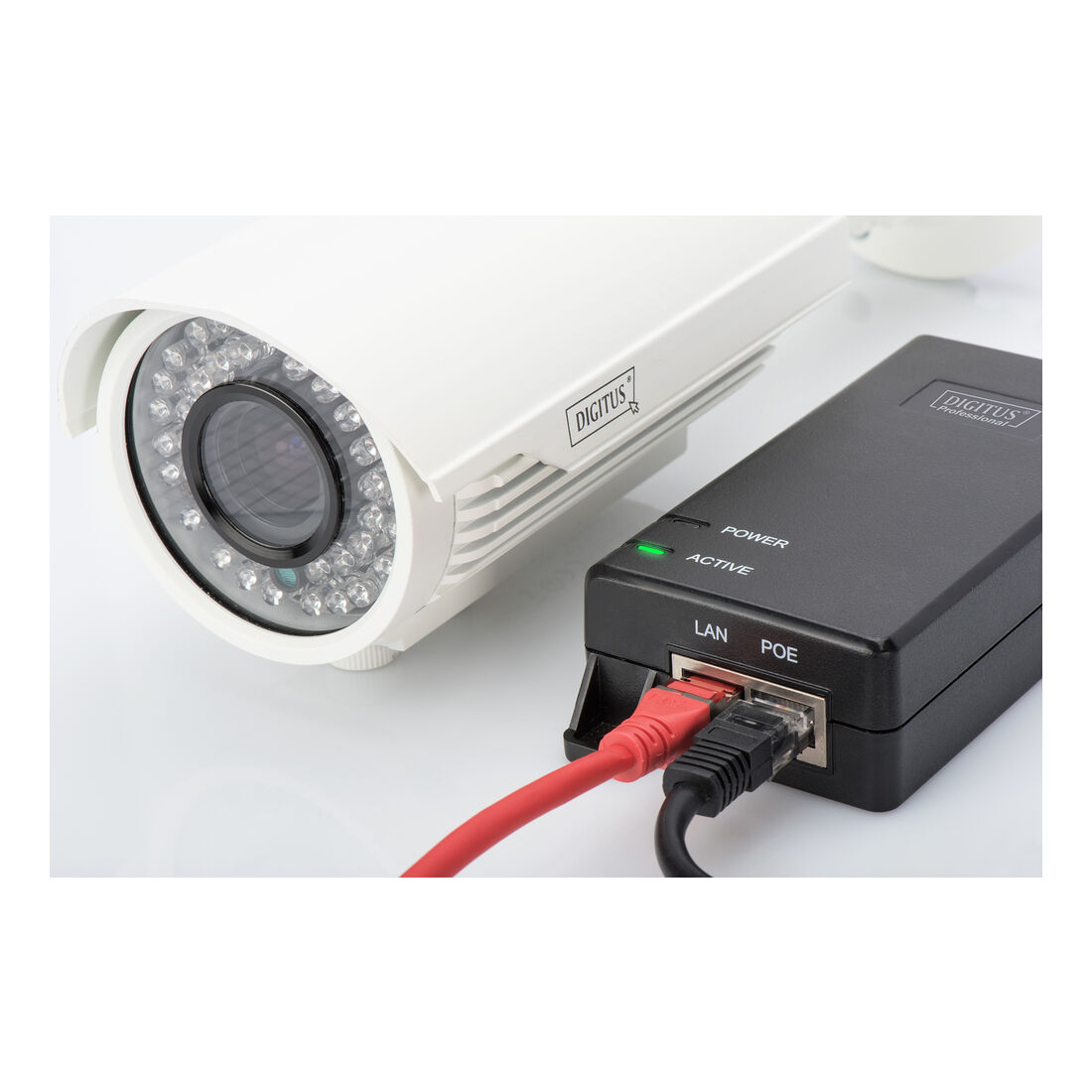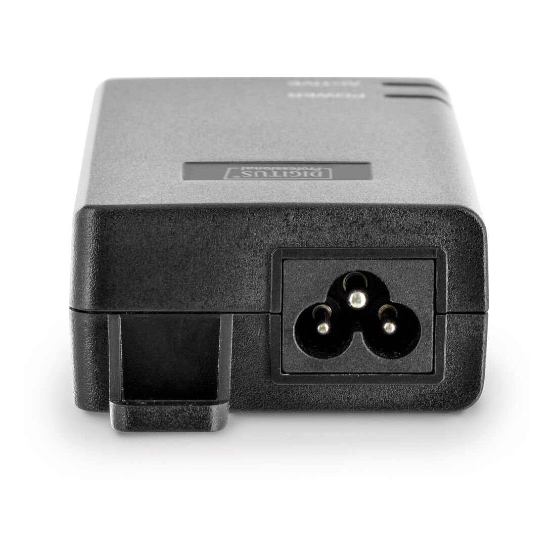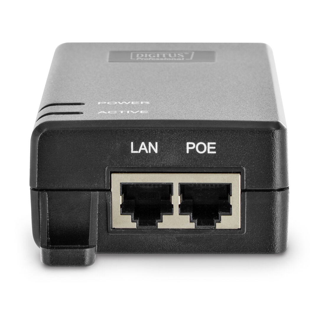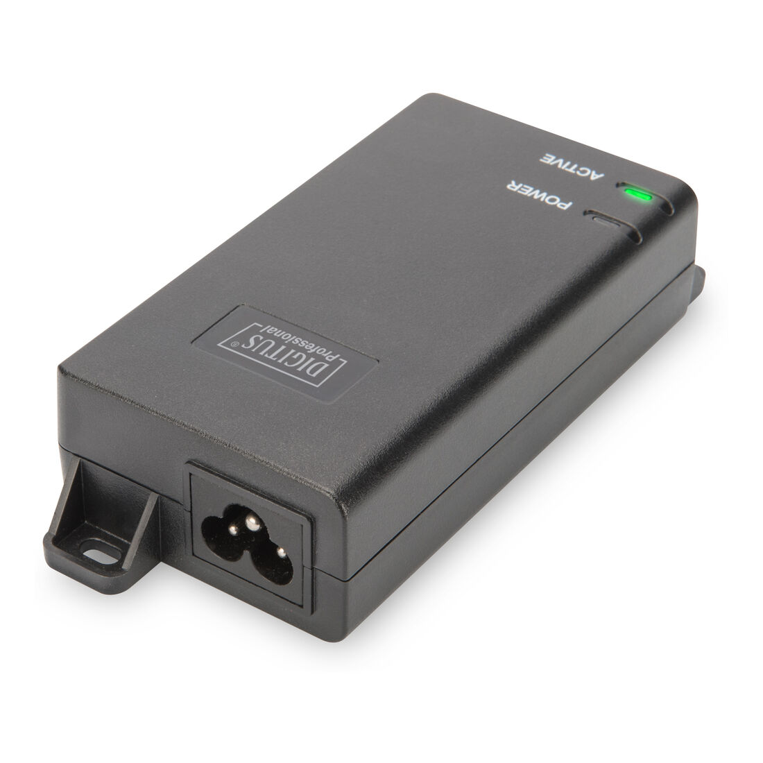 Digitus Iniettore Gigabit Ethernet PoE+, 802.3at, 30 W. Tipo di interfaccia Ethernet: Gigabit Ethernet, Velocità trasferimento Ethernet LAN: 10,100,1000 Mbit/s, Standard di rete: IEEE 802.3at. Colore del prodotto: Nero, Massima distanza di funzionamento: 400 m. Power over Ethernet (PoE): 48 V, Potenza in uscita: 30 W, Consumo energetico (max): 7 W. Peso: 200 g, Dimensioni (LxPxA): 140 x 63 x 32,5 mm. Numero di prodotti inclusi: 1 pz