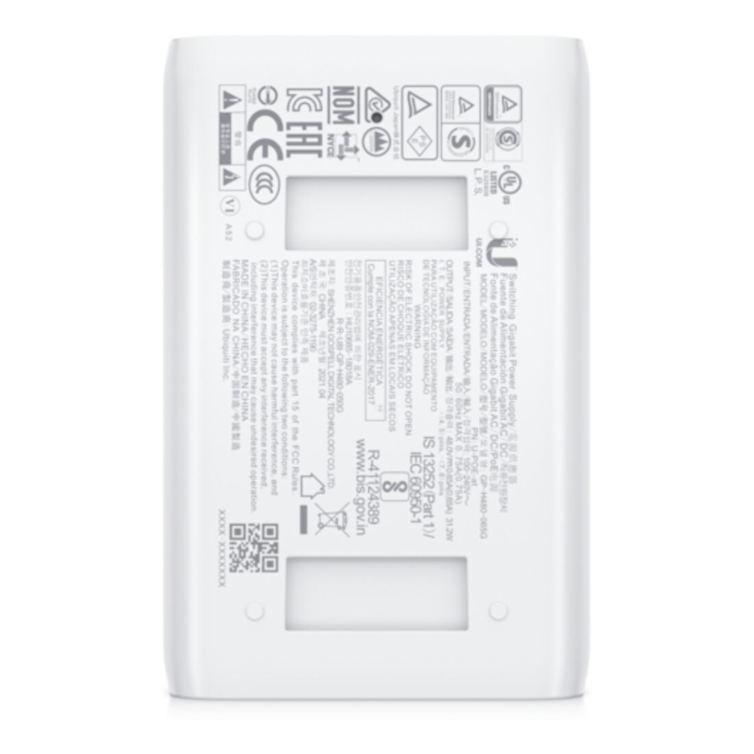 Ubiquiti U-POE-AT. Tipo di interfaccia Ethernet: Gigabit Ethernet, Standard di rete: IEEE 802.3at. Colore del prodotto: Bianco. Potenza in uscita: 30 W, Voltaggio di ingresso: 48 V. Peso: 156 g. Numero di prodotti inclusi: 1 pz