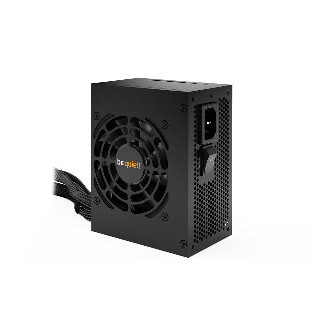 be quiet! SFX POWER 3 450W. Potenza totale: 450 W, Tensione di ingresso AC: 100 – 240 V, Potenza di picco: 500 W. Connettore scheda madre: 20+4 pin ATX, Lunghezza del cavo di alimentazione della scheda madre: 35 cm, Lunghezza del cavo di alimentazione SATA: 300,450,600 mm. Utilizzo: PC, Fattore di forma dell’unità di alimentazione (PSU): SFX, Certificazione 80 PLUS: 80 PLUS Bronze. Colore del prodotto: Nero, Tipo di raffreddamento: Attivo, Diametro del ventilatore: 8 cm. Larghezza: 125 mm, Profondità: 100 mm, Altezza: 64 mm