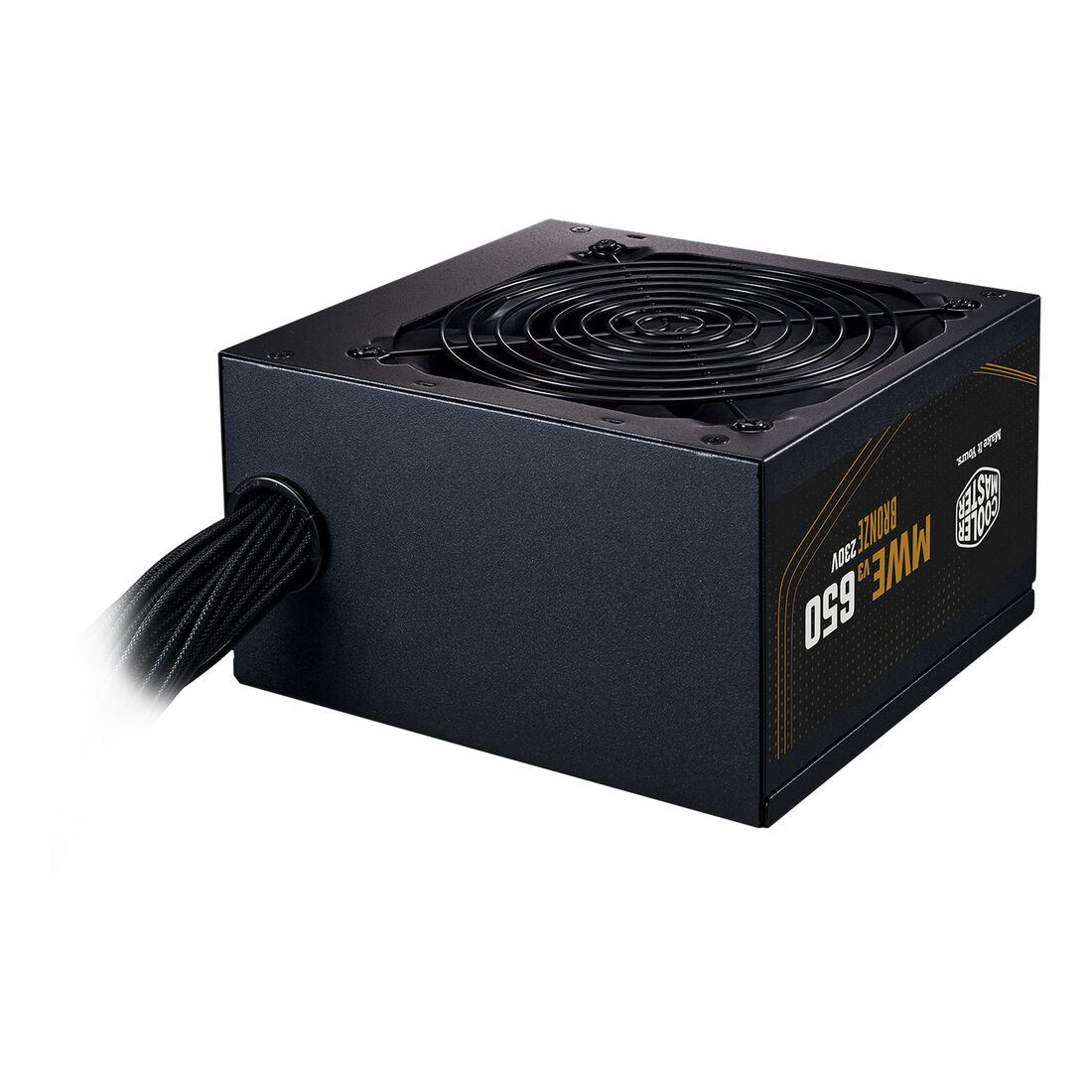 Cooler Master MWE Bronze 650 V3. Potenza totale: 650 W, Tensione di ingresso AC: 100 – 240 V, Frequenza di ingresso AC: 50/60 Hz. Connettore scheda madre: 24-pin ATX, Lunghezza del cavo di alimentazione della scheda madre: 50 cm, Lunghezza del cavo di alimentazione SATA: 400,550,700 mm. Utilizzo: PC/server, Fattore di forma dell’unità di alimentazione (PSU): ATX, Certificazione 80 PLUS: 80 PLUS Bronze. Colore del prodotto: Nero, Tipo di raffreddamento: Attivo, Diametro del ventilatore: 12 cm. Certificati di conformità: BIS, BSMI, CCC, CE, Federal Communications Commission (FCC), KC, RCM, RoHS, UKCA, cTUVus, Certificazione: ErP 2014 Lot 3