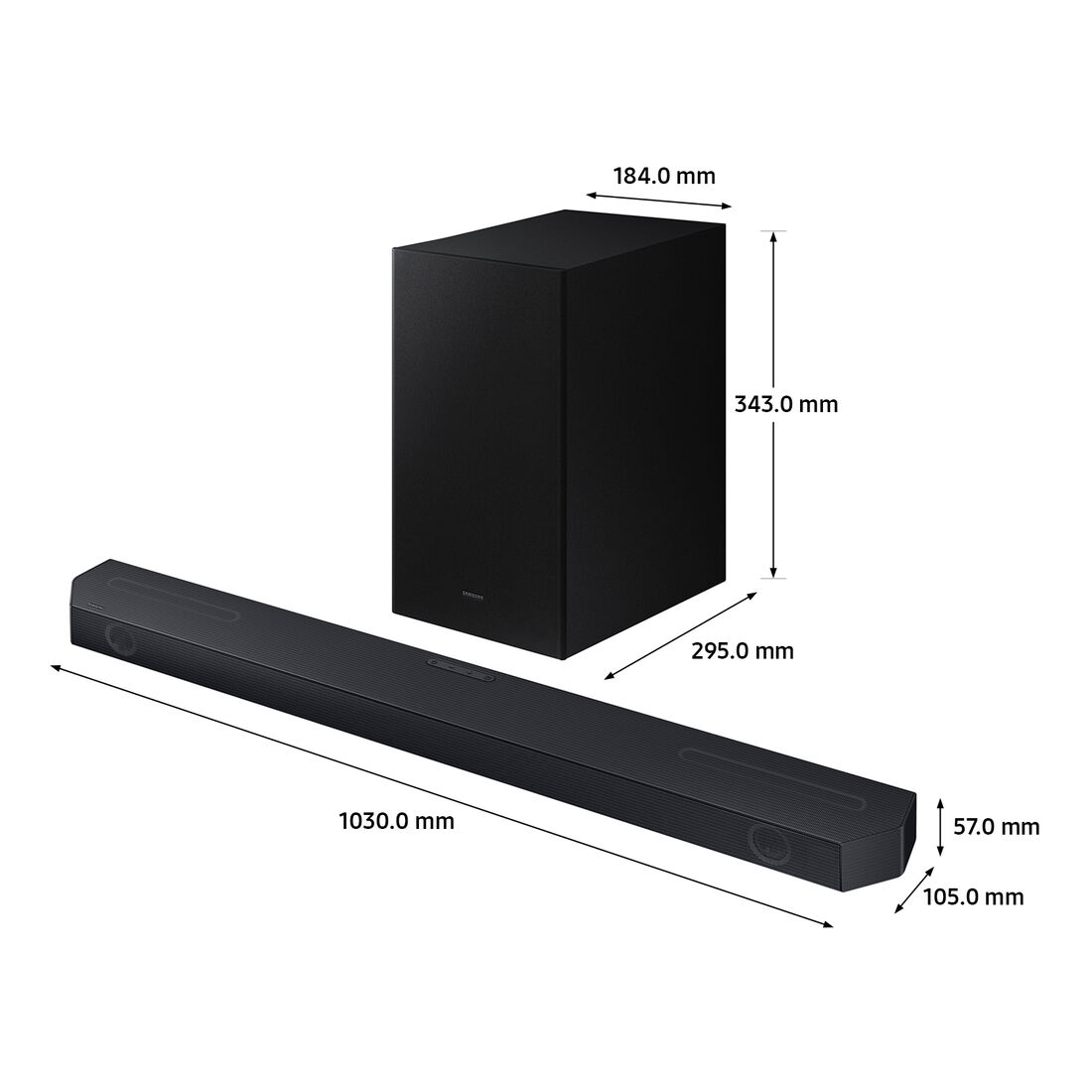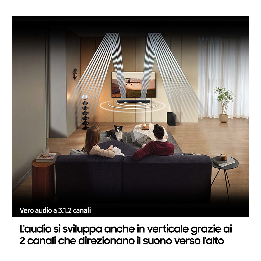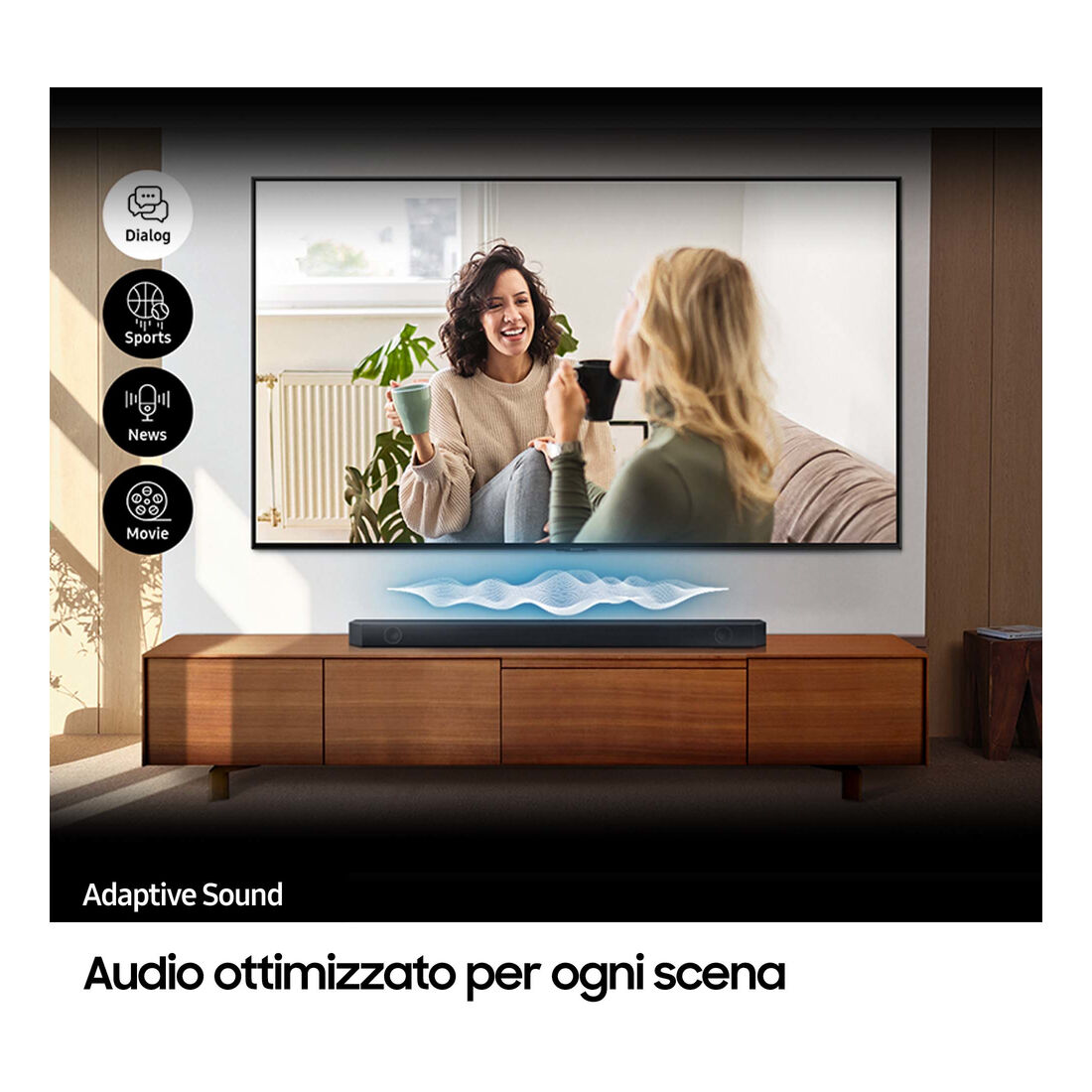 Samsung Soundbar HW-Q600C/ZF Serie Q, 9 speaker, Wireless Dolby Atmos, Audio a 3.1.2 canali, Q-Simphony, Compatibile con Alexa e Google Assistant, Black 2023. Sistema audio: 3.1.2 canali, Potenza in uscita (RMS): 34 W, Formato audio integrato: Dolby Atmos, Dolby Digital Plus, Dolby TrueHD. Colore del prodotto: Nero, Tecnologia High Dynamic Range (HDR): High Dynamic Range 10+ (HDR10 Plus), Formati audio supportati: AAC, AIFF, FLAC, LPCM, MP3, OGG, WAV. Tecnologia di connessione: Wireless. Larghezza: 1030 mm, Profondità: 105 mm, Altezza: 57 mm. Larghezza imballo: 1088 mm, Profondità imballo: 238 mm, Altezza imballo: 452 mm