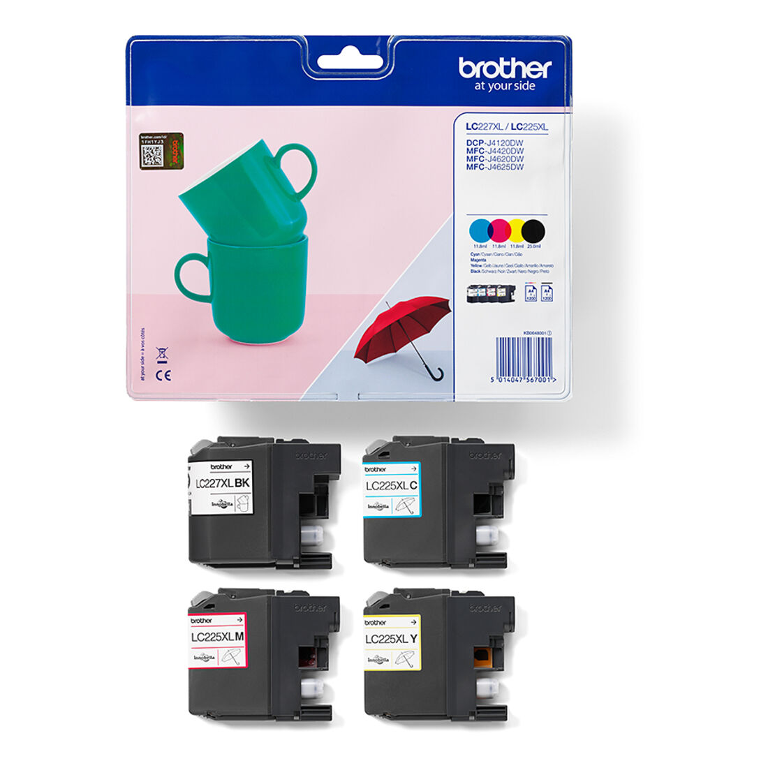 Brother LC-227XLVALBP. Tipo di fornitura: Confezione multipla, Resa in pagine dell’inchiostro a colori: 1200 pagine, Colori di stampa: Nero, Ciano, Magenta, Giallo, Quantità per pacco: 4 pz, Resa in pagine dell’inchiostro a colori: 1200 pagine