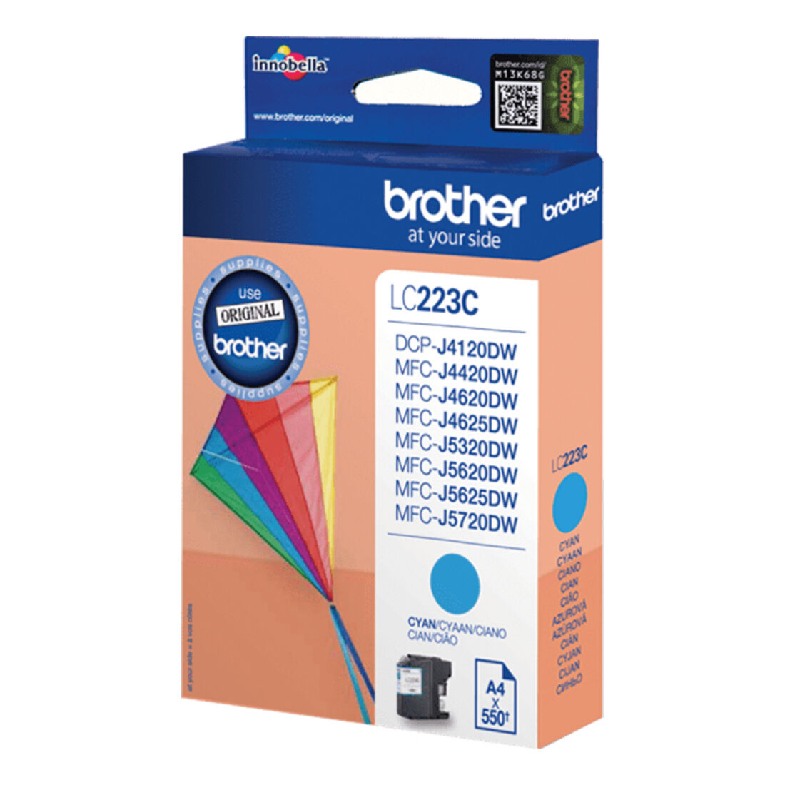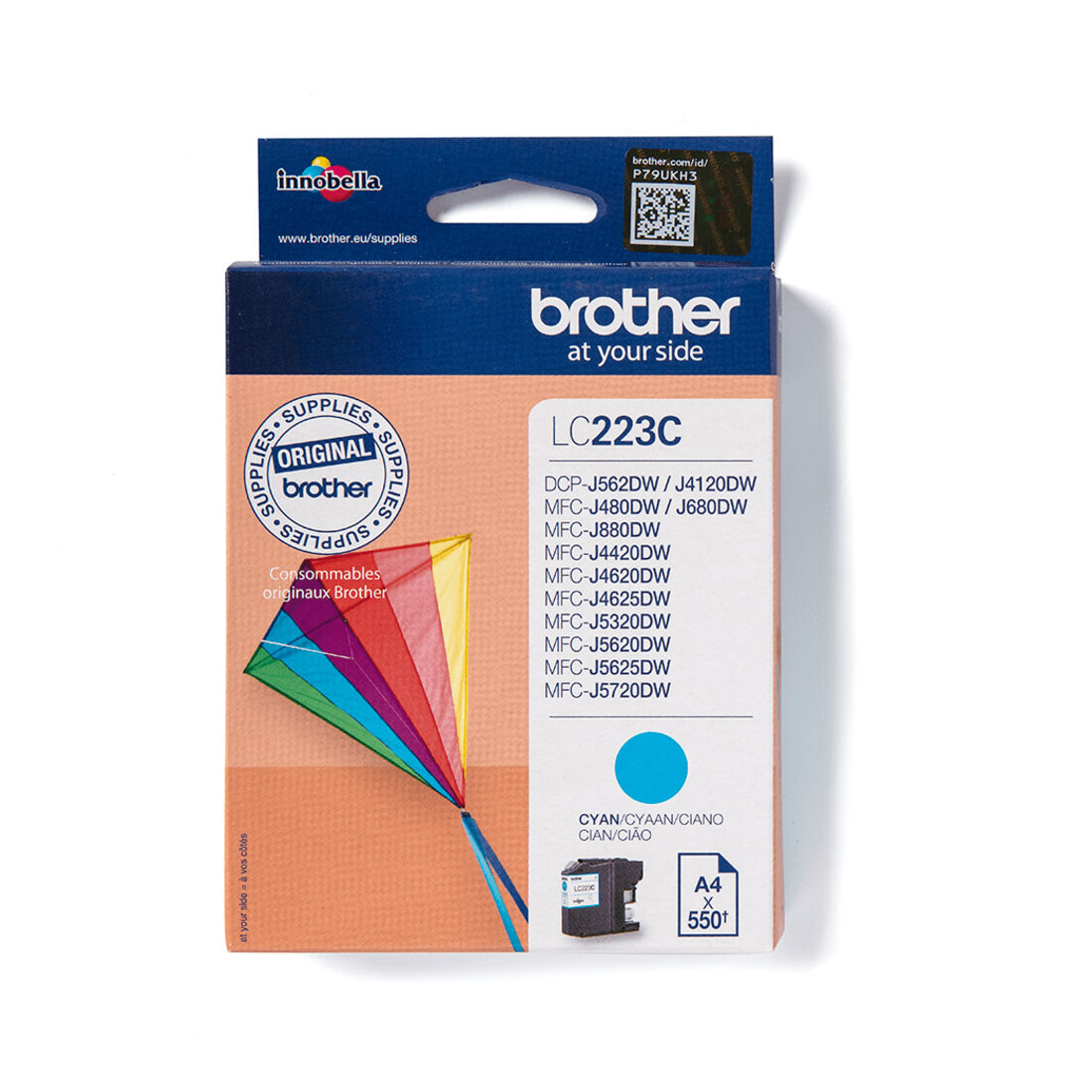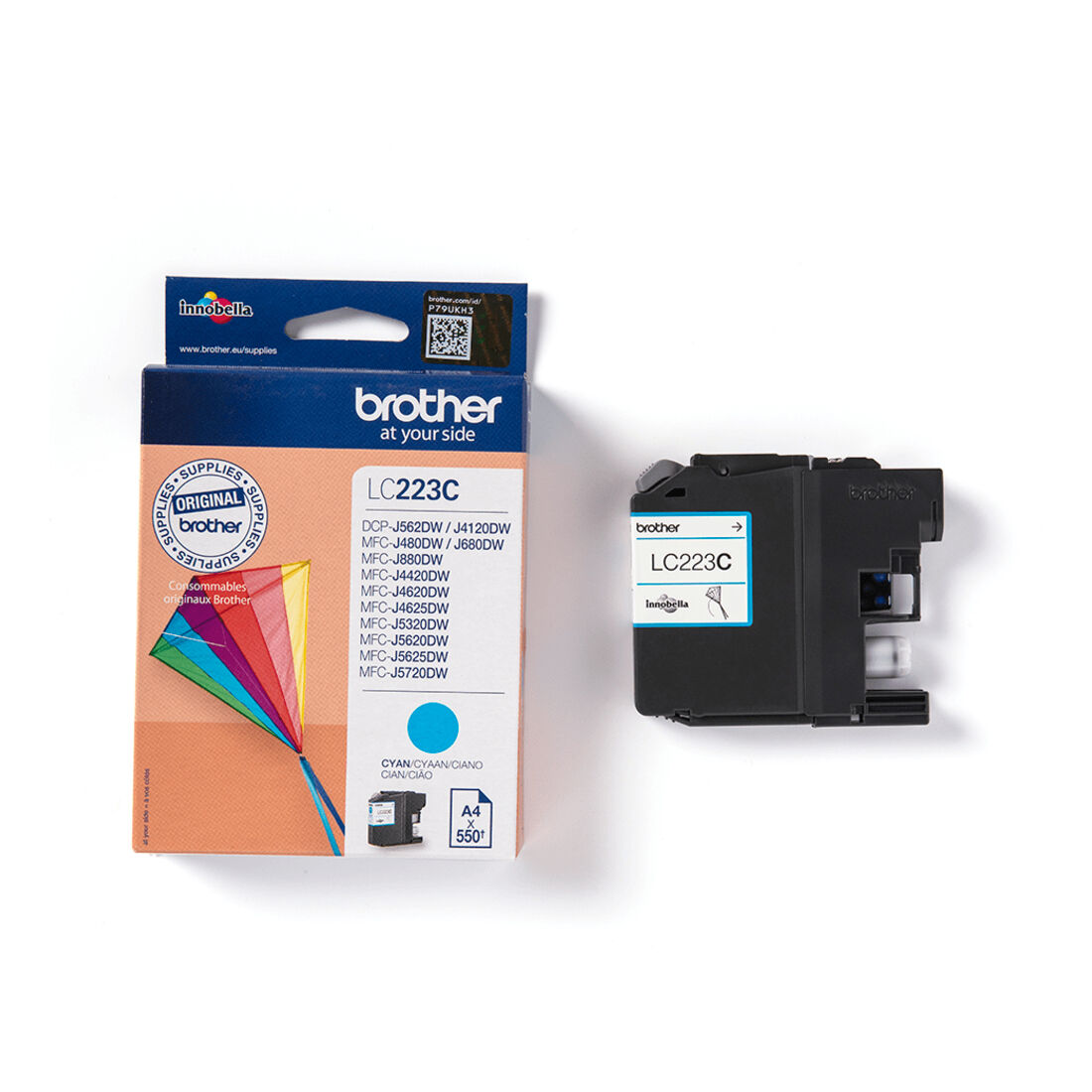 Brother LC223C. Tipo di fornitura: Confezione singola, Resa in pagine dell’inchiostro a colori: 550 pagine, Colori di stampa: Ciano, Quantità per pacco: 1 pz