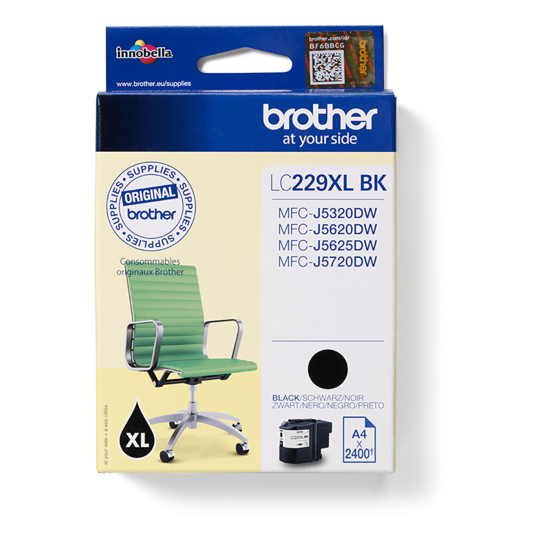 Brother LC229XLBK. Tipo di fornitura: Confezione singola, Colori di stampa: Nero, Quantità per pacco: 1 pz, Resa in pagine dell’inchiostro a colori: 2400 pagine