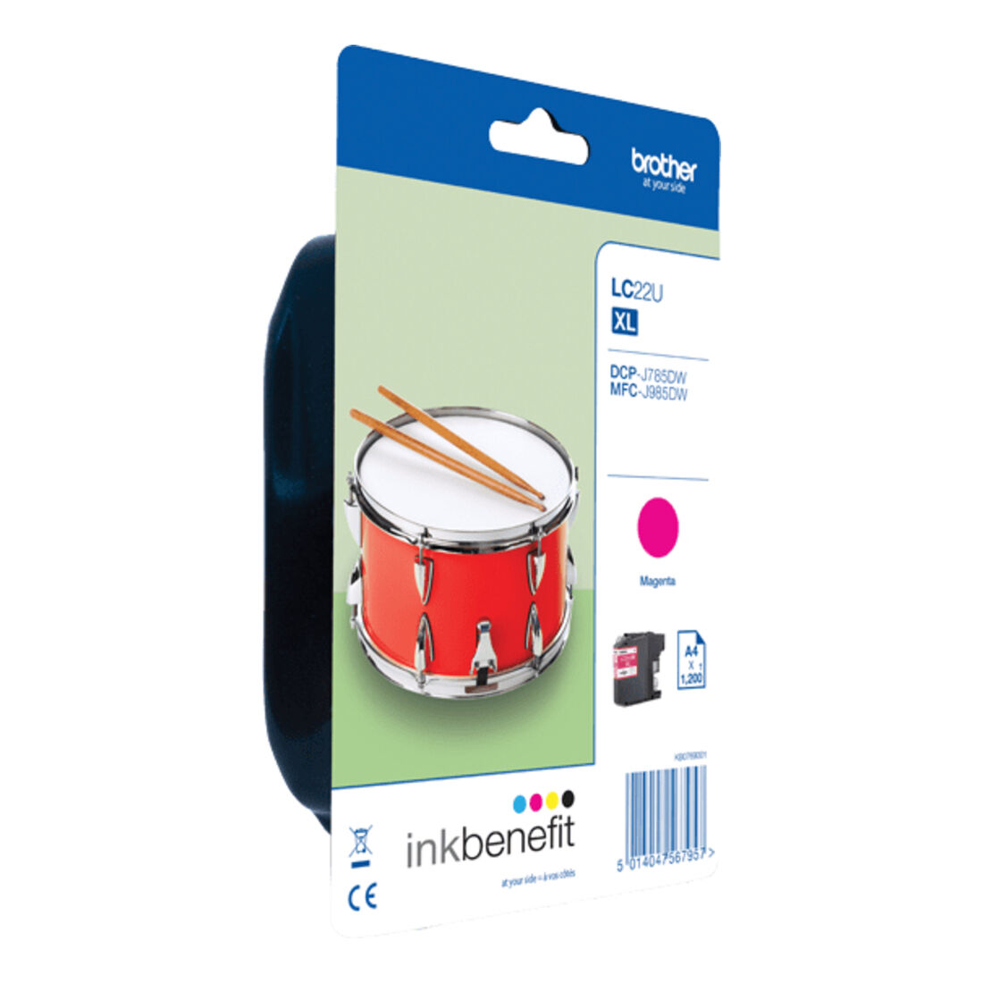 Brother LC22UMBP. Tipo di fornitura: Confezione singola, Resa in pagine dell’inchiostro a colori: 1200 pagine, Colori di stampa: Magenta, Quantità per pacco: 1 pz