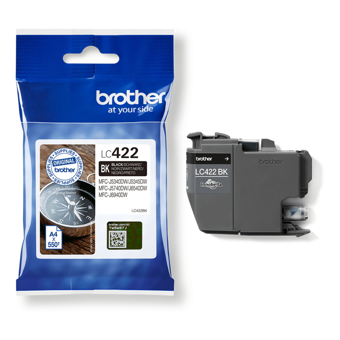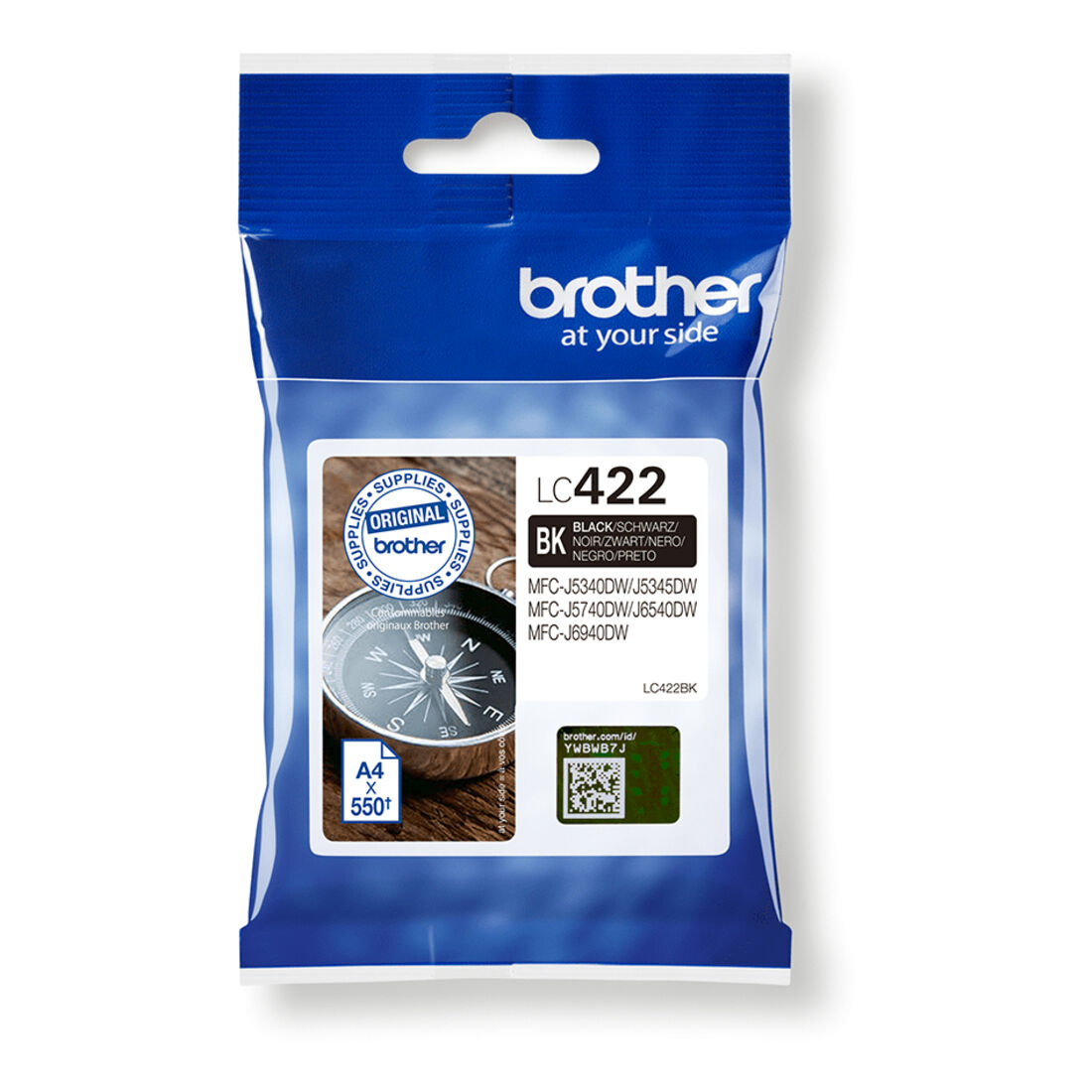 Brother LC422BK. Tipo di fornitura: Confezione singola, Colori di stampa: Nero, Quantità per pacco: 1 pz, Resa in pagine dell’inchiostro a colori: 550 pagine