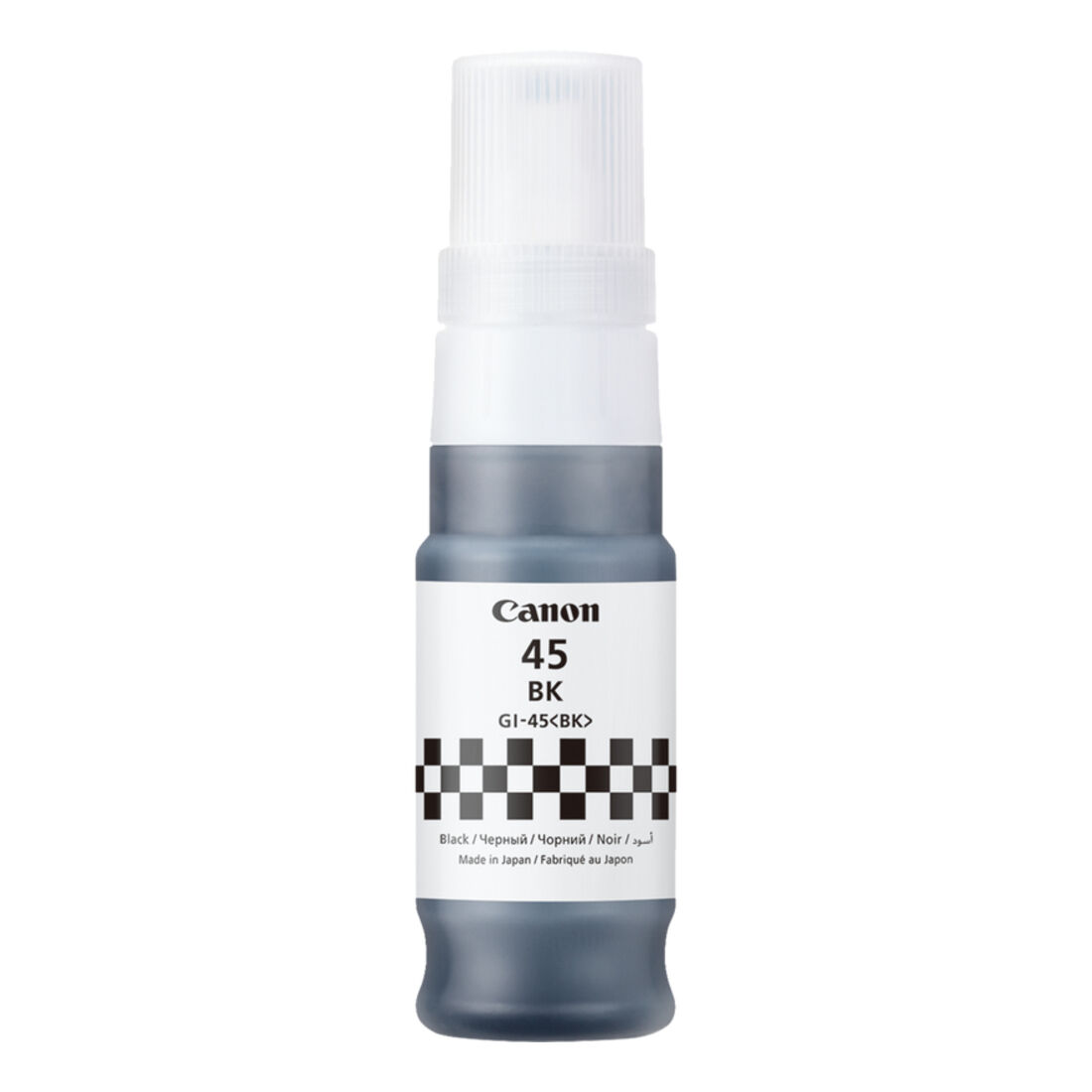 Canon GI-45BK. Volume dell’inchiostro nero: 70 ml, Tipo di fornitura: Confezione singola, Quantità per pacco: 1 pz, Resa in pagine dell’inchiostro a colori: 3000 pagine