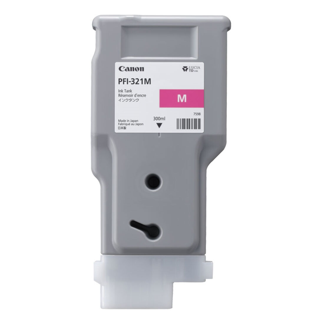 Canon PFI-321 M. Tipo di inchiostro a colori: Inchiostro a base di pigmento, Tipo di cartuccia: Resa standard, Tipo di fornitura: Confezione singola, Volume dell’inchiostro a colori: 300 ml, Colori di stampa: Magenta, Quantità per pacco: 1 pz