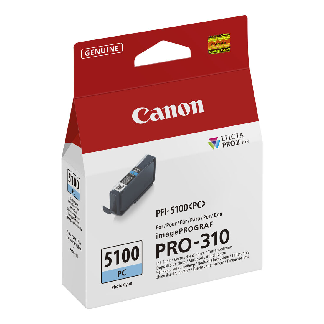 Canon PFI-5100 PC. Volume dell’inchiostro nero: 14,4 ml, Tipo di fornitura: Confezione singola, Colori di stampa: Ciano per foto, Quantità per pacco: 1 pz