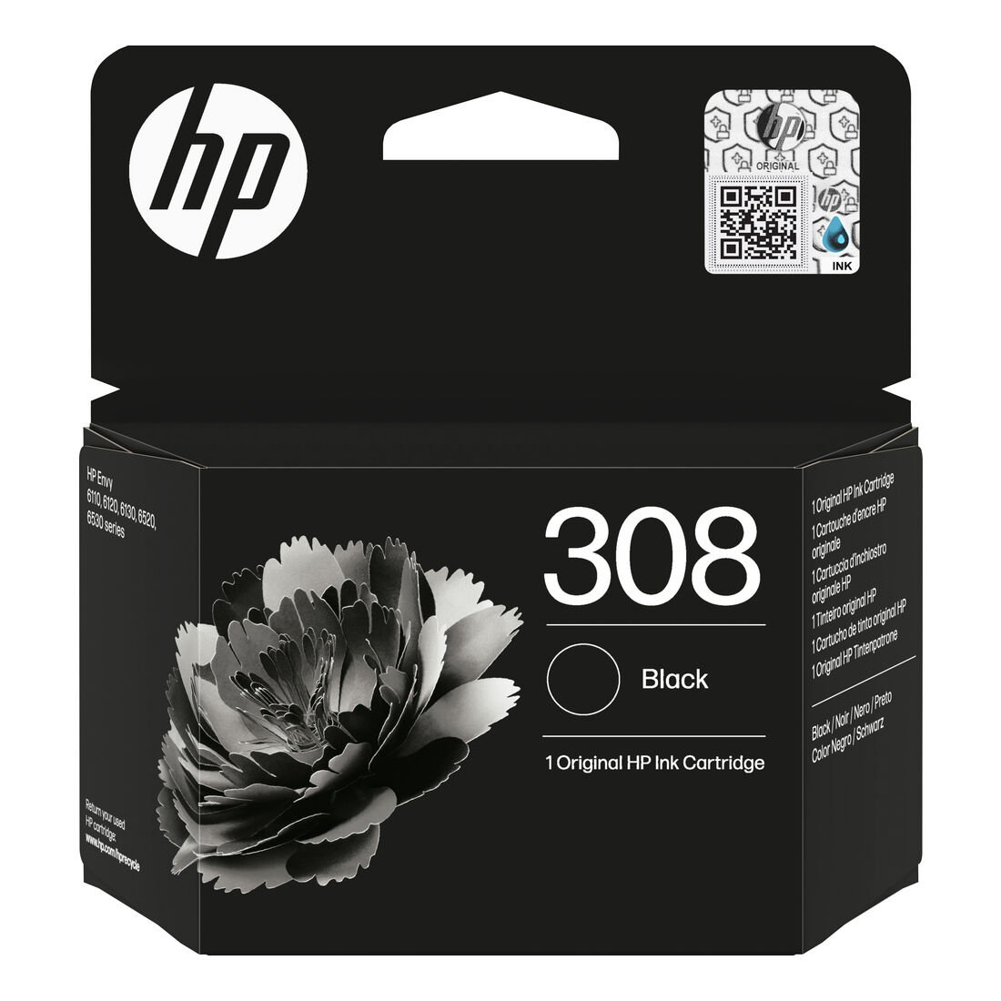 HP Cartuccia di inchiostro nero originale 308. Tipo di cartuccia: Resa standard, Tipo di inchiostro nero: Inchiostro a base di pigmento, Tipo di fornitura: Confezione singola, Colori di stampa: Nero, Quantità per pacco: 1 pz, Resa in pagine dell’inchiostro a colori: 160 pagine