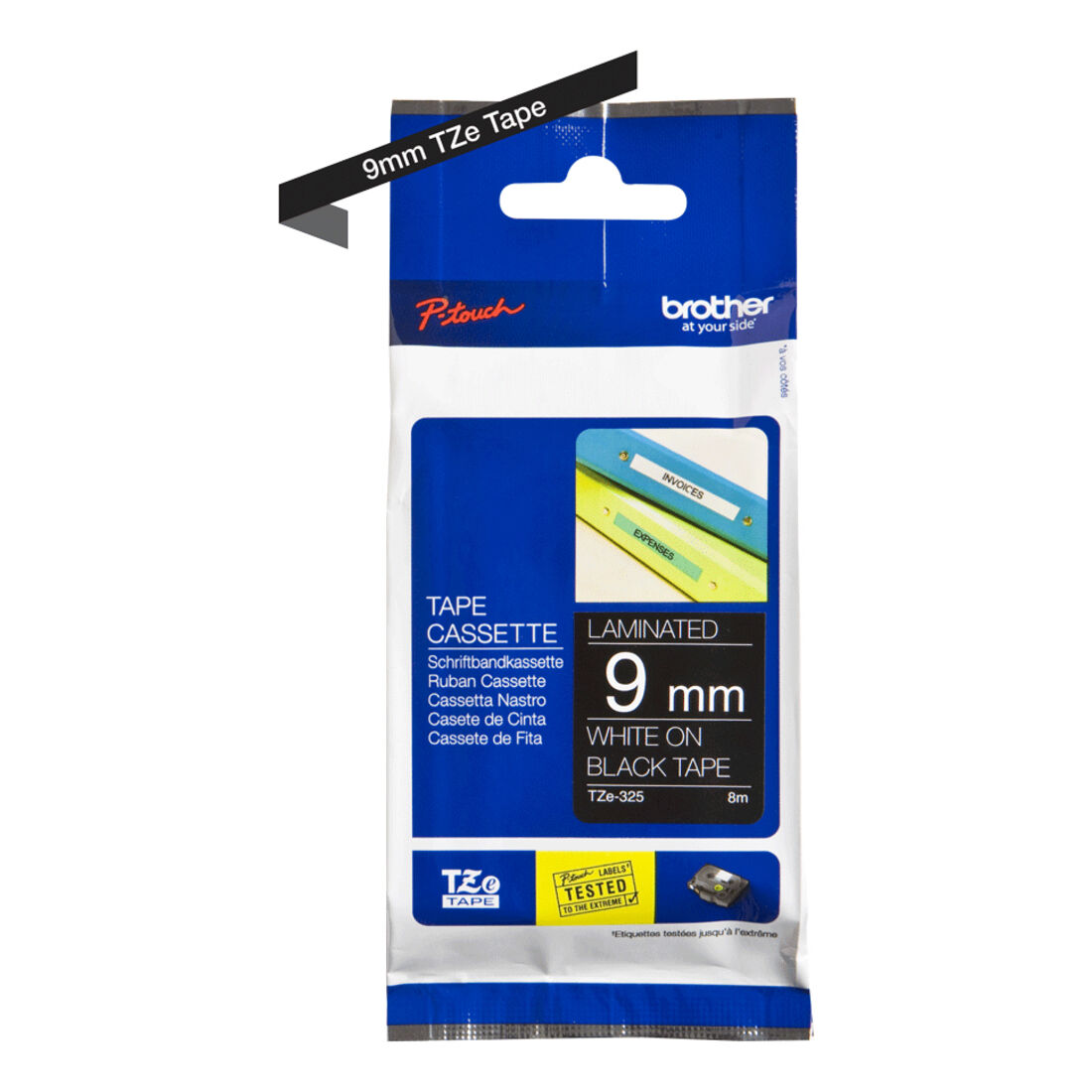 Brother TZE-325. Tipo nastro: TZ, Colore del prodotto: Nero, Paese di origine: Filippine. Ampiezza nastro: 9 mm, Lunghezza nastro: 8 m, Larghezza: 17 mm. Altezza del pallet: 15,9 cm, Numero di cartoni per pallet: 36 pz, Numero di livelli per pallet: 6 pz. Dimensione nastro: 9 mm
