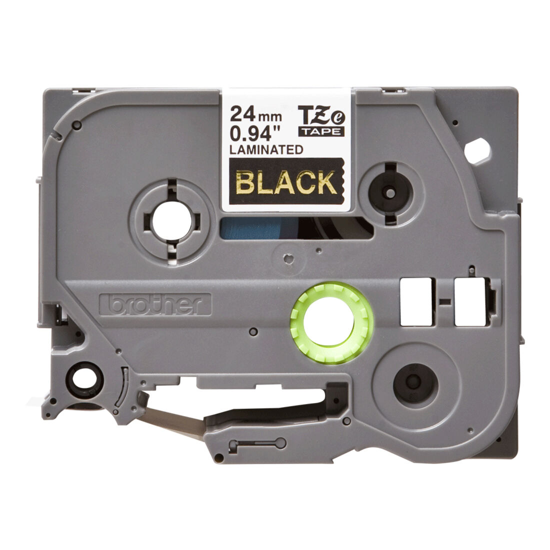 Brother TZE-354. Colore etichetta: Oro su nero, Tipo nastro: TZe, Tecnologia di stampa: Trasferimento termico. Ampiezza nastro: 2,4 cm, Lunghezza nastro: 8 m, Larghezza: 30 mm. Altezza del pallet: 14,2 cm, Numero di cartoni per pallet: 25 pz, Numero di livelli per pallet: 5 pz. Dimensione nastro: 2,4 cm