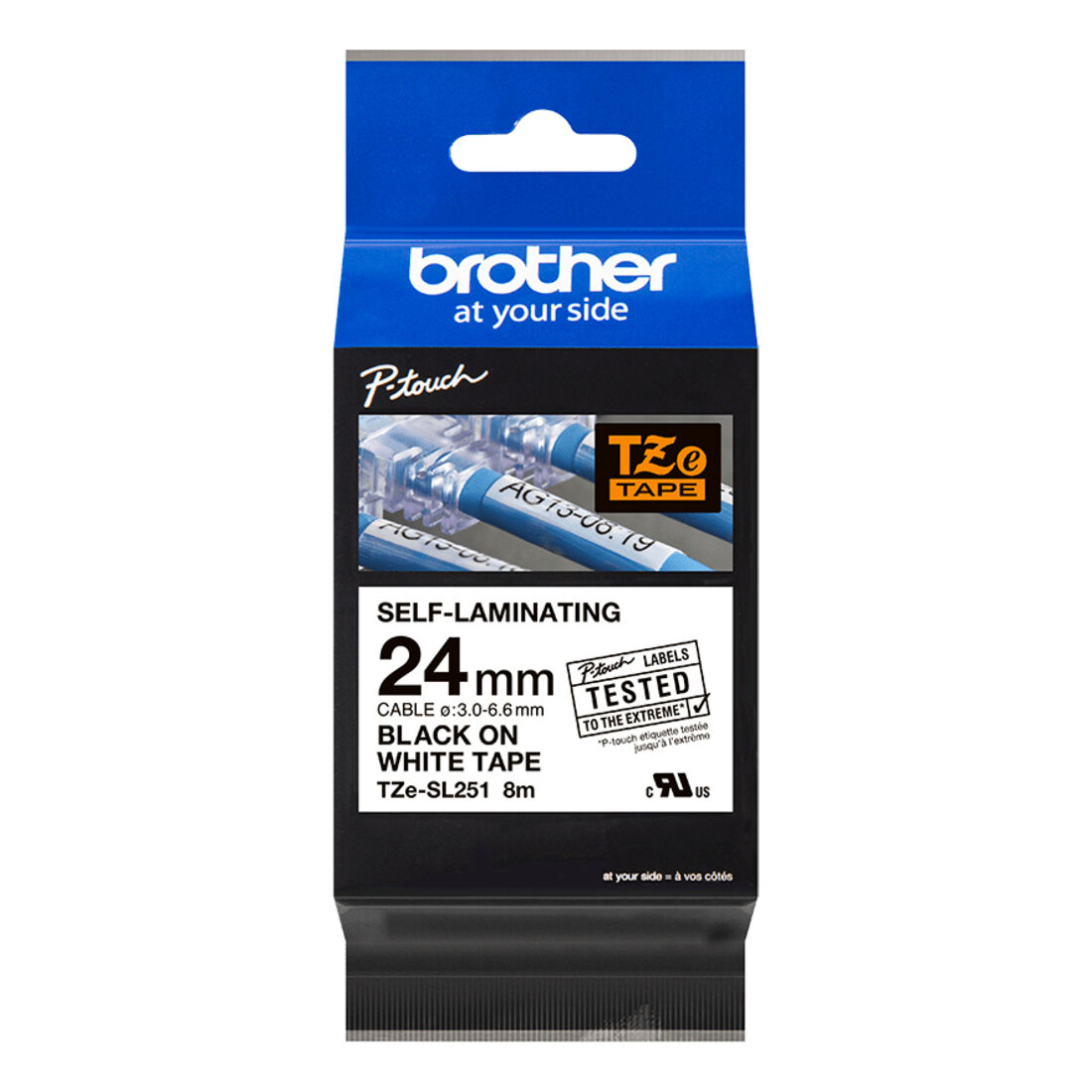 Brother TZESL251. Colore etichetta: Nero su bianco, Paese di origine: Cina, Conservazione dei pezzi di ricambio: 5 anno/i. Ampiezza nastro: 2,4 cm, Lunghezza nastro: 8 m, Larghezza: 30 mm. Altezza del pallet: 16,5 cm, Numero di cartoni per pallet: 192 pz, Numero di livelli per pallet: 12 pz