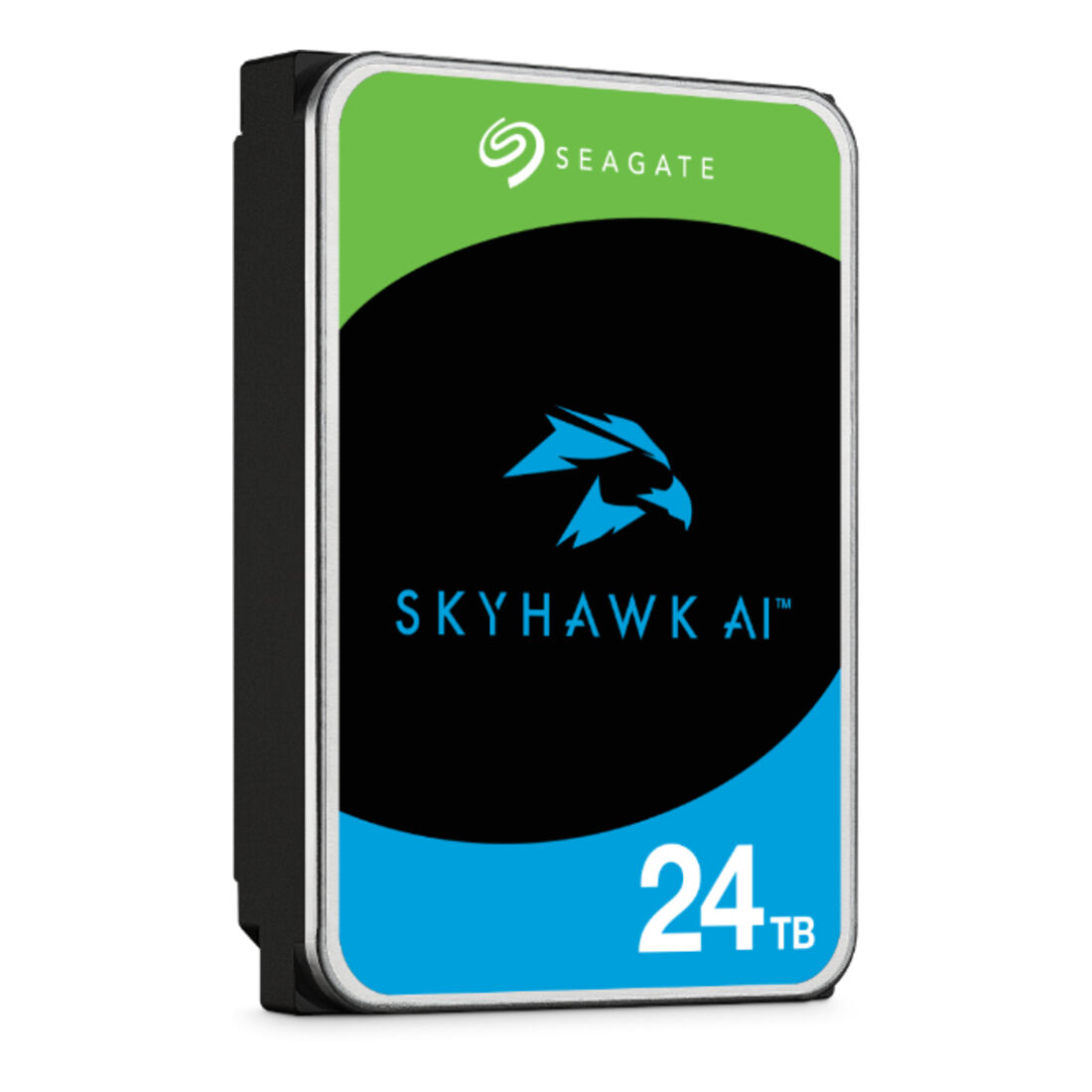 Seagate SkyHawk AI. Capacità hard disk: 24 TB, Velocità di rotazione hard disk: 7200 Giri/min, Dimensione del buffer HDD: 512 MB, Dimensione hard disk: 3.5″, Interfaccia: Serial ATA III