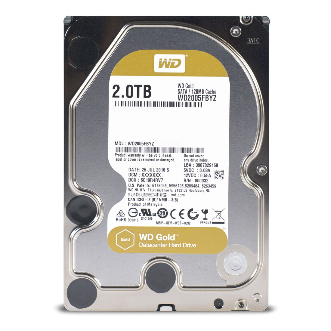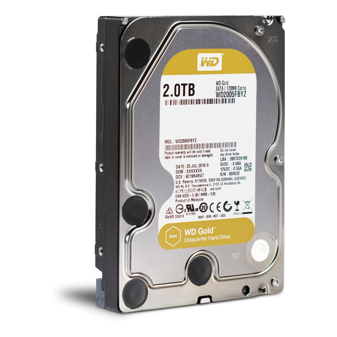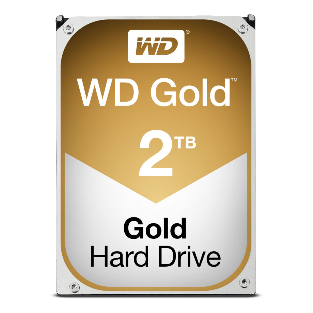 Western Digital Gold. Capacità hard disk: 2 TB, Velocità di rotazione hard disk: 7200 Giri/min, Dimensione del buffer HDD: 128 MB, Dimensione hard disk: 3.5″, Interfaccia: Serial ATA III