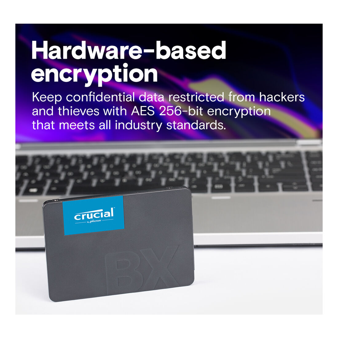 Crucial BX500. Capacità SSD: 4 TB, Dimensione SSD: 2.5″, Velocità di trasferimento dati: 6 Gbit/s, Componente per: PC/PC portatile
