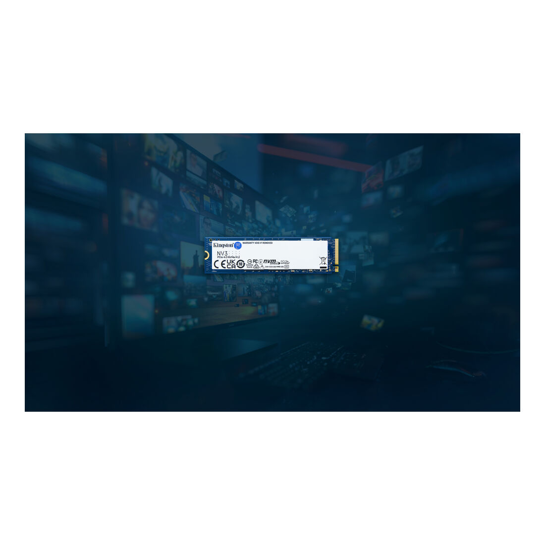 Kingston Technology 1000G NV3 M.2 2280 NVMe SSD. Capacità SSD: 1 TB, Dimensione SSD: M.2, Velocità di lettura: 6000 MB/s, Velocità di scrittura: 4000 MB/s, Componente per: PC/PC portatile