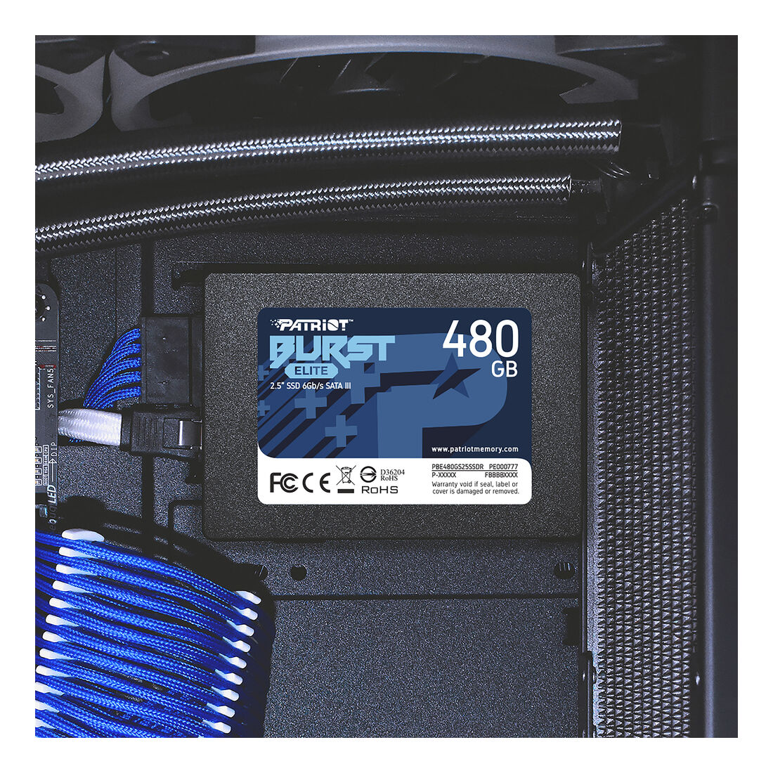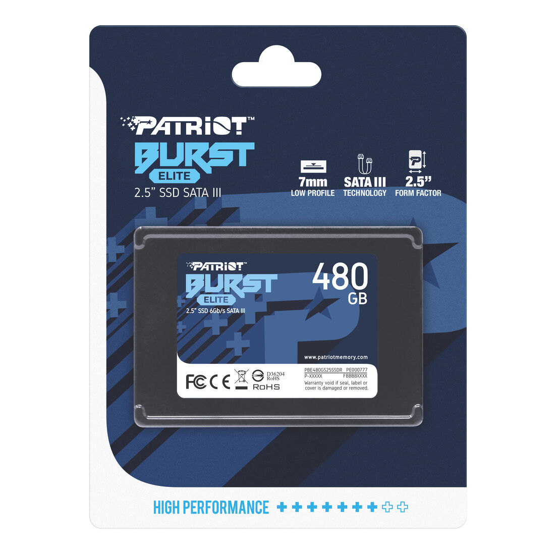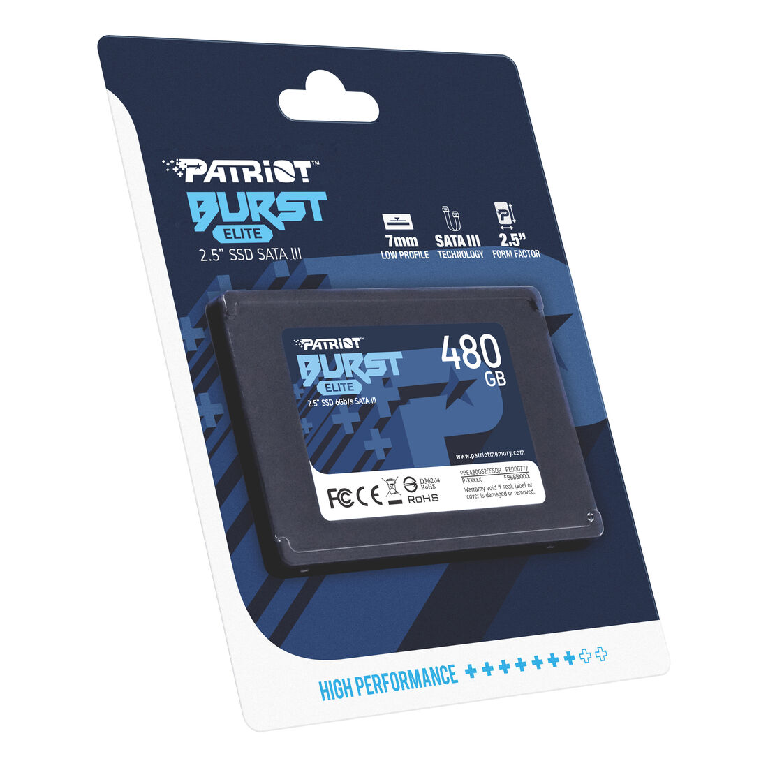 Patriot Memory Burst Elite. Capacità SSD: 480 GB, Dimensione SSD: 2.5″, Velocità di lettura: 450 MB/s, Velocità di scrittura: 320 MB/s, Velocità di trasferimento dati: 6 Gbit/s, Componente per: PC/PC portatile