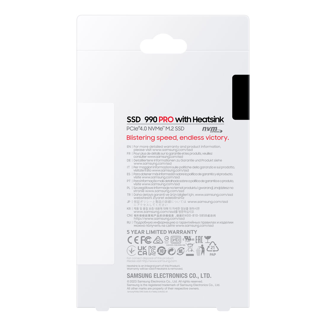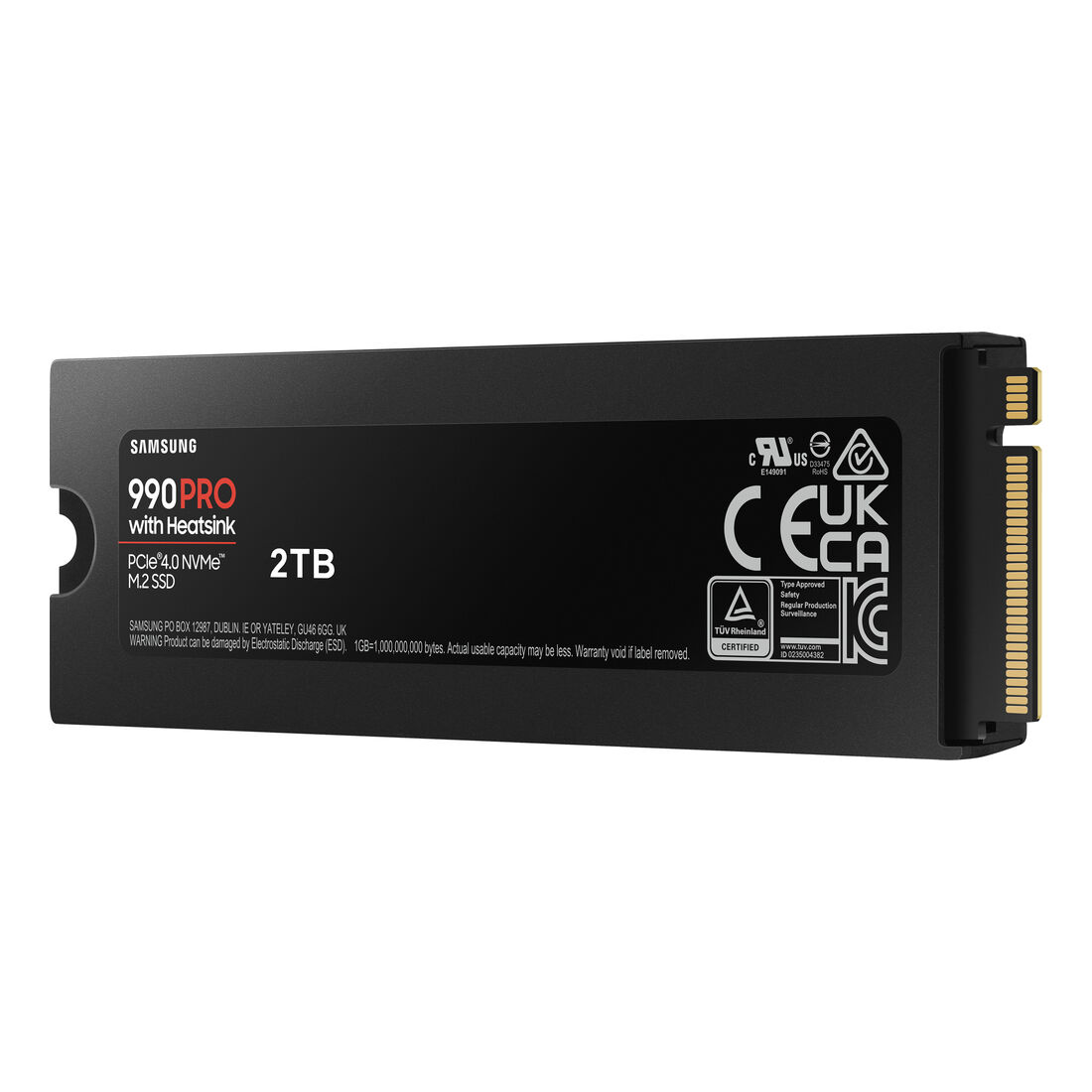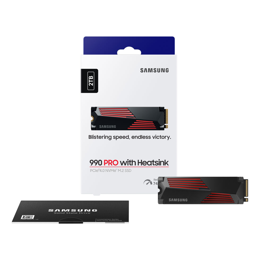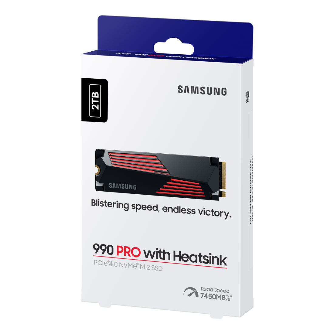 Samsung 990 PRO NVMe 2TB con Dissipatore di calore, SSD interno. Capacità SSD: 2 TB, Dimensione SSD: M.2, Velocità di lettura: 7450 MB/s, Velocità di scrittura: 6900 MB/s, Componente per: PC/console di gioco