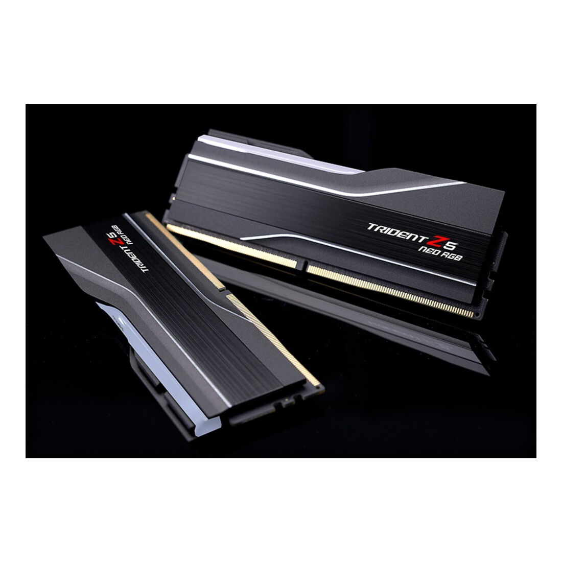 G.Skill Trident Z5 Neo RGB F5-6000J3038F16GX2-TZ5NR. Componente per: PC/server, RAM installata: 32 GB, Configurazione della memoria (moduli x dimensione): 2 x 16 GB, Tipo di RAM: DDR5, Velocità memoria: 6000 MHz, Fattore di forma memoria: 288-pin DIMM, Latenza CAS: 30