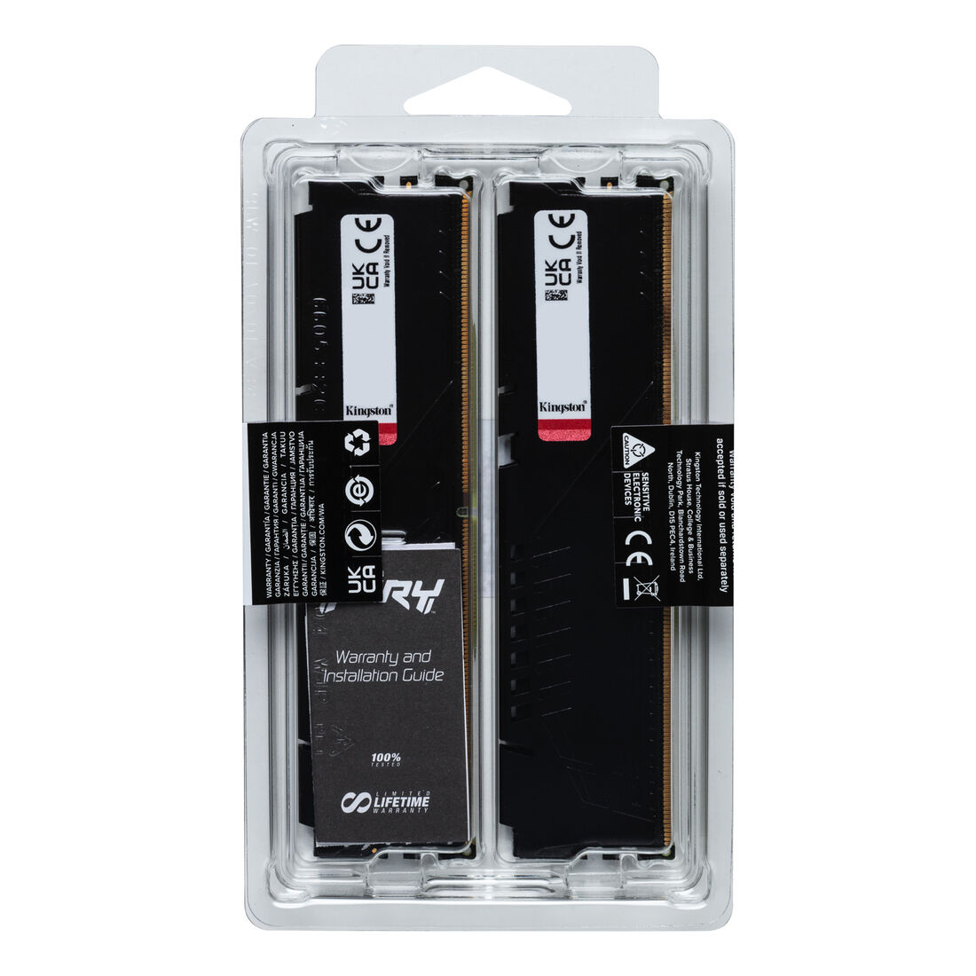 Kingston Technology FURY Beast 64 GB 5200 MT/s DDR5 CL40 DIMM (Kit da 2) Black. Componente per: PC, RAM installata: 64 GB, Configurazione della memoria (moduli x dimensione): 2 x 32 GB, Tipo di RAM: DDR5, Fattore di forma memoria: 288-pin DIMM, Latenza CAS: 40