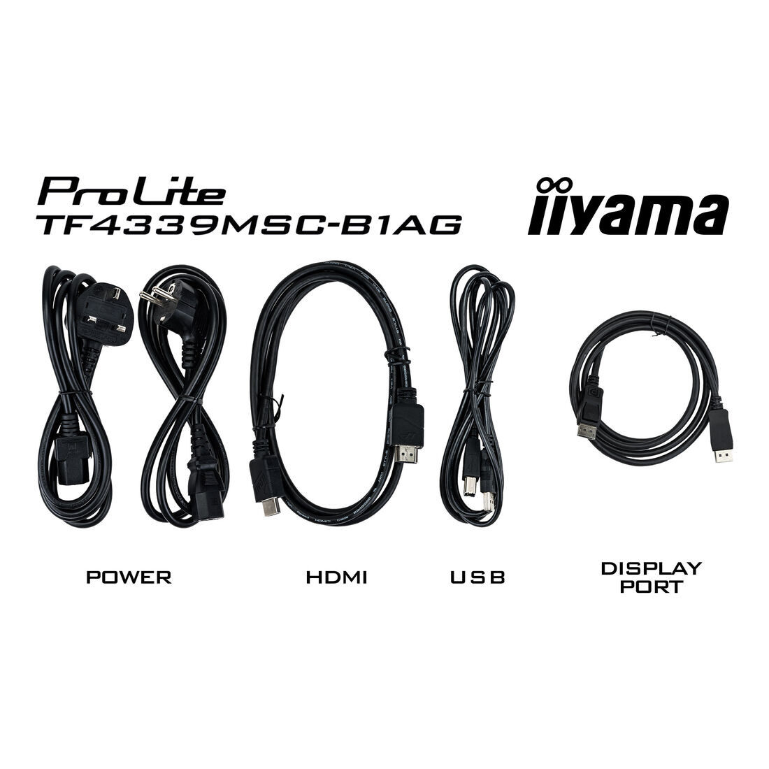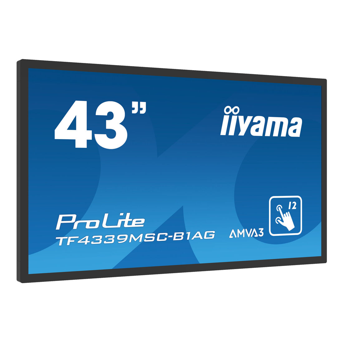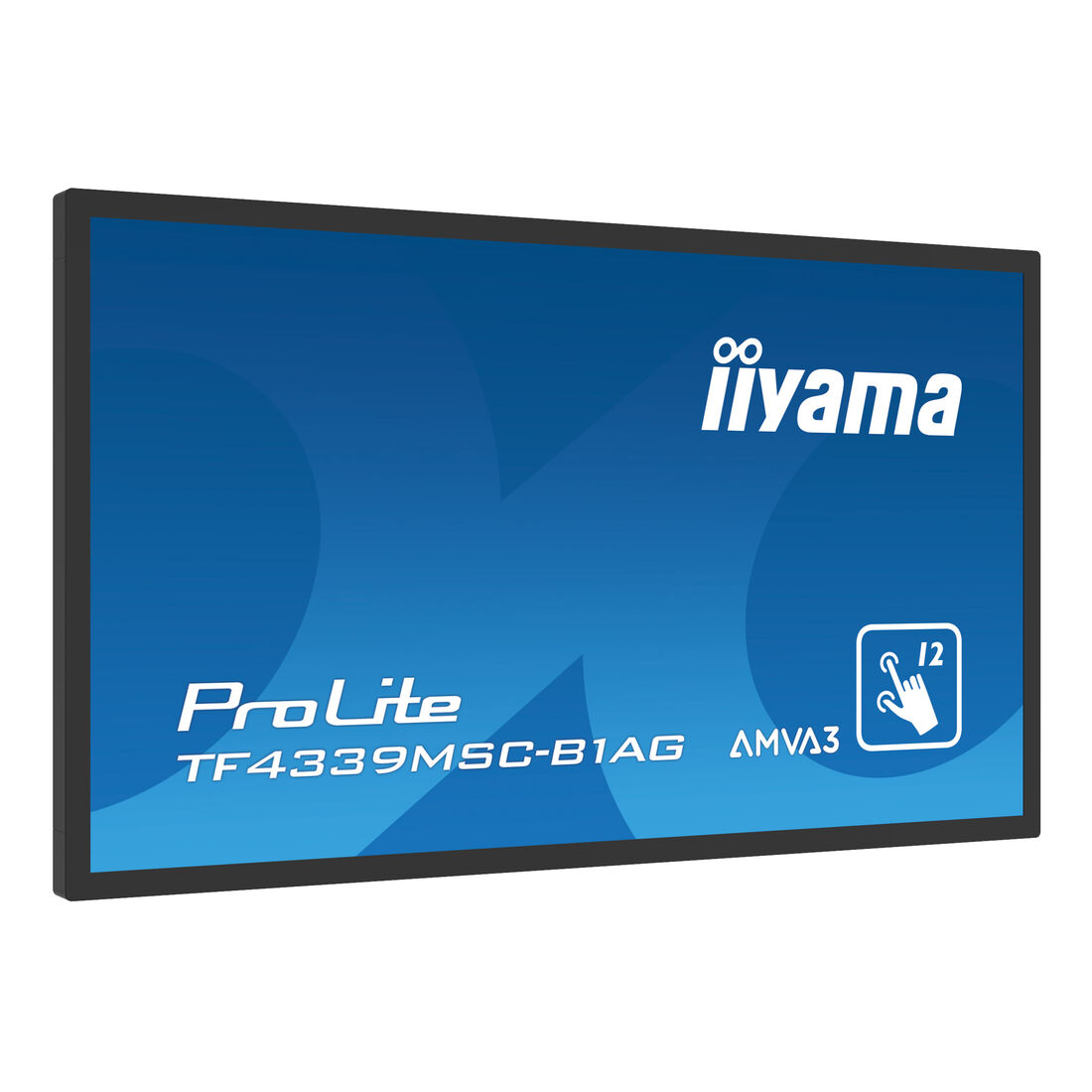 iiyama ProLite TF4339MSC-B1AG. Dimensioni diagonale schermo: 109,2 cm (43″), Risoluzione del display: 1920 x 1080 Pixel, Tipologia HD: Full HD, Tecnologia display: LED, Tempo di risposta: 8 ms, Rapporto d’aspetto nativo: 16:9, Angolo di visualizzazione (orizzontale): 178°, Angolo di visualizzazione (verticale): 178°. Altoparlanti incorporati. Colore del prodotto: Nero