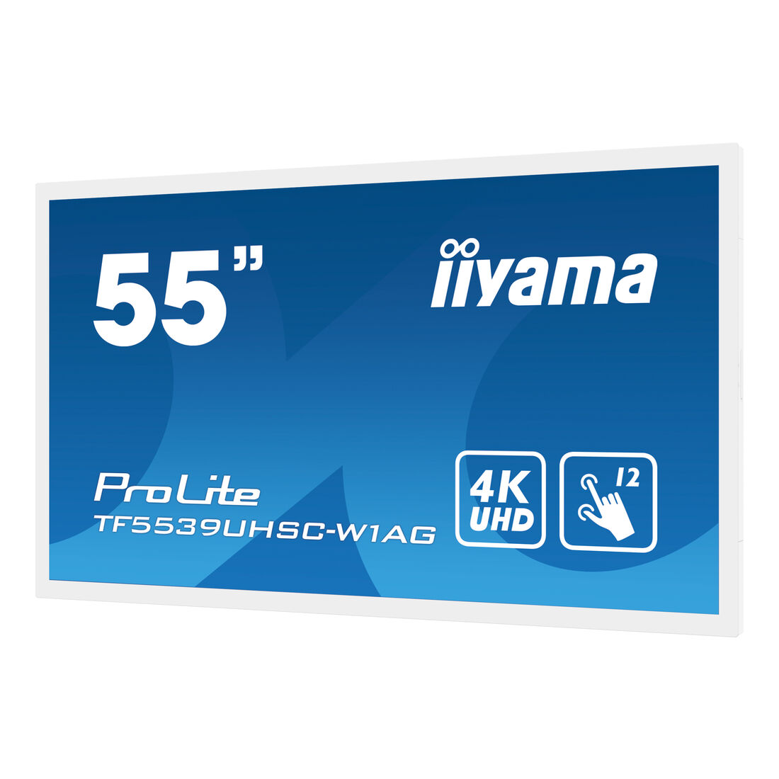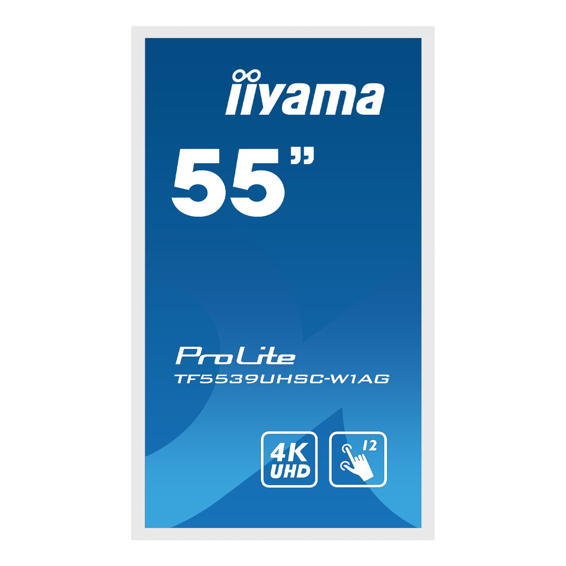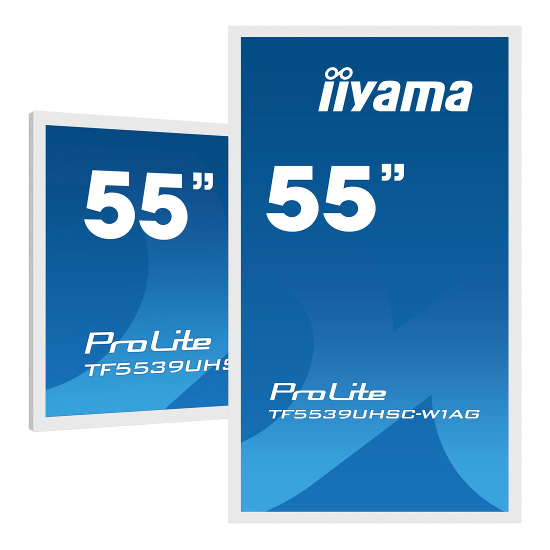 iiyama ProLite TF5539UHSC-W1AG. Dimensioni diagonale schermo: 139,7 cm (55″), Risoluzione del display: 3840 x 2160 Pixel, Tipologia HD: 4K Ultra HD, Tecnologia display: LED, Tempo di risposta: 8 ms, Rapporto d’aspetto nativo: 16:9, Angolo di visualizzazione (orizzontale): 178°, Angolo di visualizzazione (verticale): 178°. Altoparlanti incorporati. Montaggio standard VESA. Colore del prodotto: Bianco