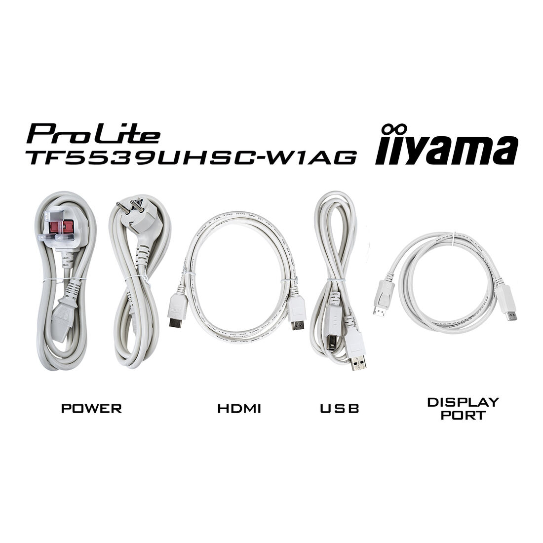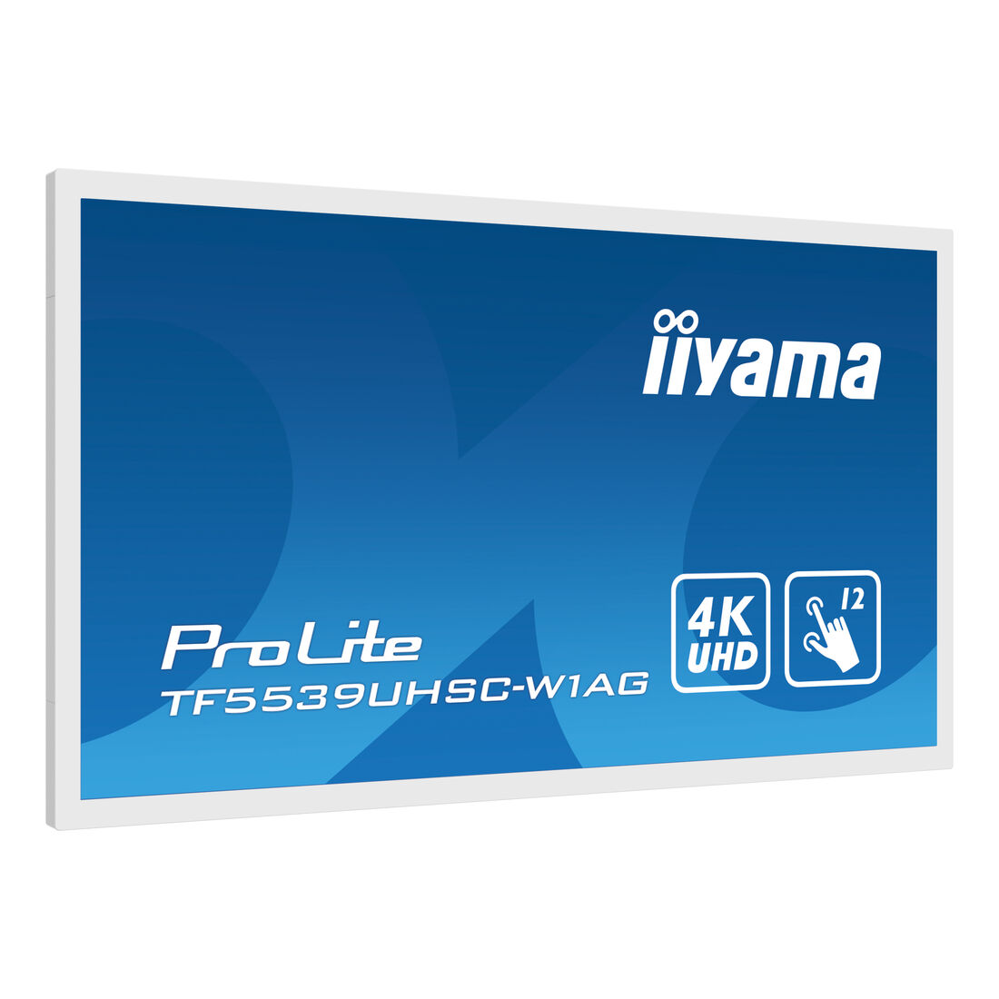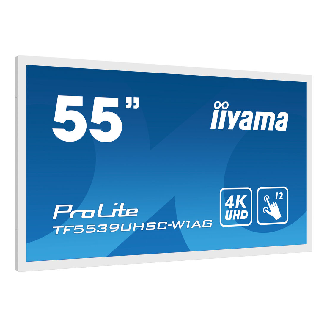 iiyama ProLite TF5539UHSC-W1AG. Dimensioni diagonale schermo: 139,7 cm (55″), Risoluzione del display: 3840 x 2160 Pixel, Tipologia HD: 4K Ultra HD, Tecnologia display: LED, Tempo di risposta: 8 ms, Rapporto d’aspetto nativo: 16:9, Angolo di visualizzazione (orizzontale): 178°, Angolo di visualizzazione (verticale): 178°. Altoparlanti incorporati. Montaggio standard VESA. Colore del prodotto: Bianco