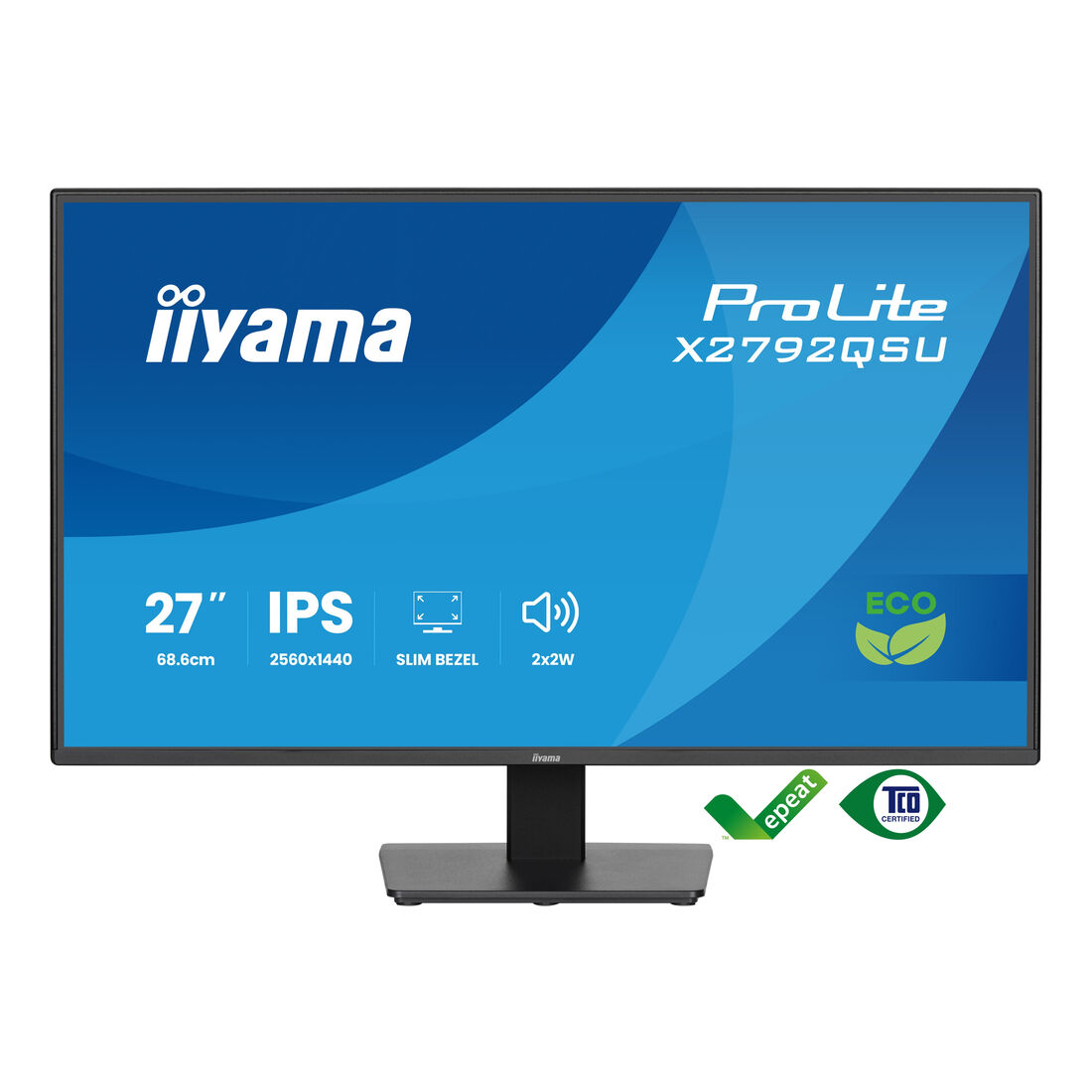 iiyama ProLite X2792QSU-B1. Dimensioni diagonale schermo: 68,6 cm (27″), Risoluzione del display: 2560 x 1440 Pixel, Tipologia HD: Quad HD, Superficie display: Opaco, Tempo di risposta: 3 ms, Rapporto d’aspetto nativo: 16:9, Angolo di visualizzazione (orizzontale): 178°, Angolo di visualizzazione (verticale): 178°. Altoparlanti incorporati. Hub USB integrato, Versione dell’hub USB: 3.2 Gen 1 (3.1 Gen 1). Montaggio standard VESA. Colore del prodotto: Nero