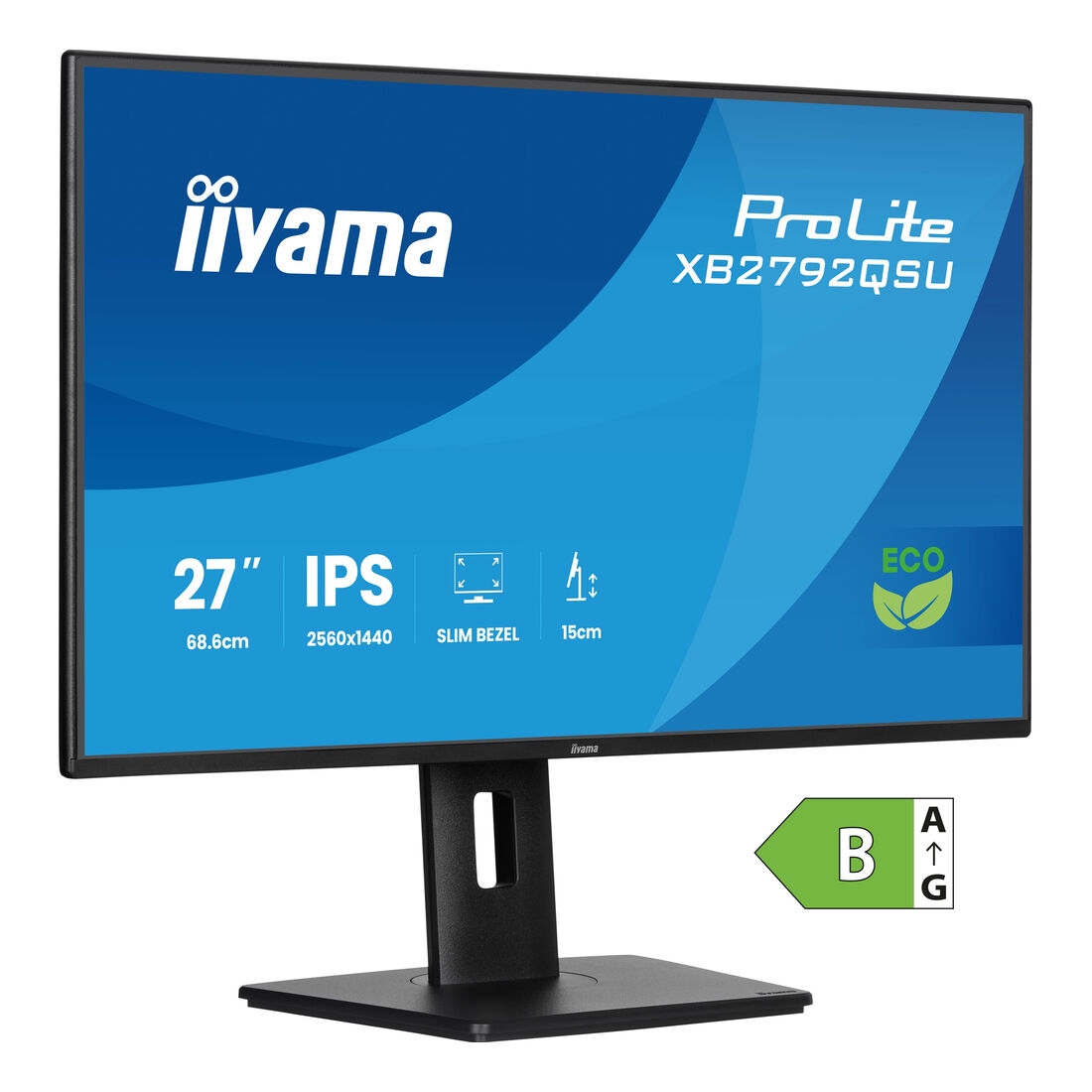 iiyama ProLite XB2792QSU-B1. Dimensioni diagonale schermo: 68,6 cm (27″), Risoluzione del display: 2560 x 1440 Pixel, Tipologia HD: Quad HD, Superficie display: Opaco, Tempo di risposta: 3 ms, Rapporto d’aspetto nativo: 16:9, Angolo di visualizzazione (orizzontale): 178°, Angolo di visualizzazione (verticale): 178°. Altoparlanti incorporati. Hub USB integrato, Versione dell’hub USB: 3.2 Gen 1 (3.1 Gen 1). Montaggio standard VESA, Regolazione altezza. Colore del prodotto: Nero