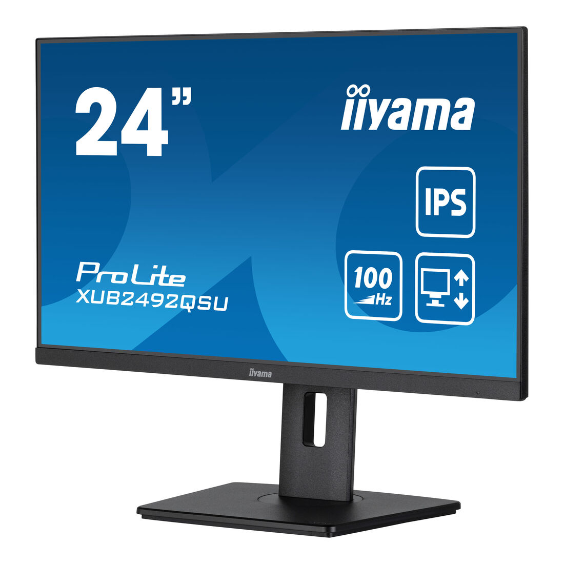 iiyama ProLite XUB2492QSU-B1. Dimensioni diagonale schermo: 60,5 cm (23.8″), Risoluzione del display: 2560 x 1440 Pixel, Tipologia HD: Quad HD, Tecnologia display: LED, Superficie display: Opaco, Tempo di risposta: 1 ms, Rapporto d’aspetto nativo: 16:9, Angolo di visualizzazione (orizzontale): 178°, Angolo di visualizzazione (verticale): 178°. Altoparlanti incorporati. Hub USB integrato, Versione dell’hub USB: 3.2 Gen 1 (3.1 Gen 1). Montaggio standard VESA, Regolazione altezza. Colore del prodotto: Nero