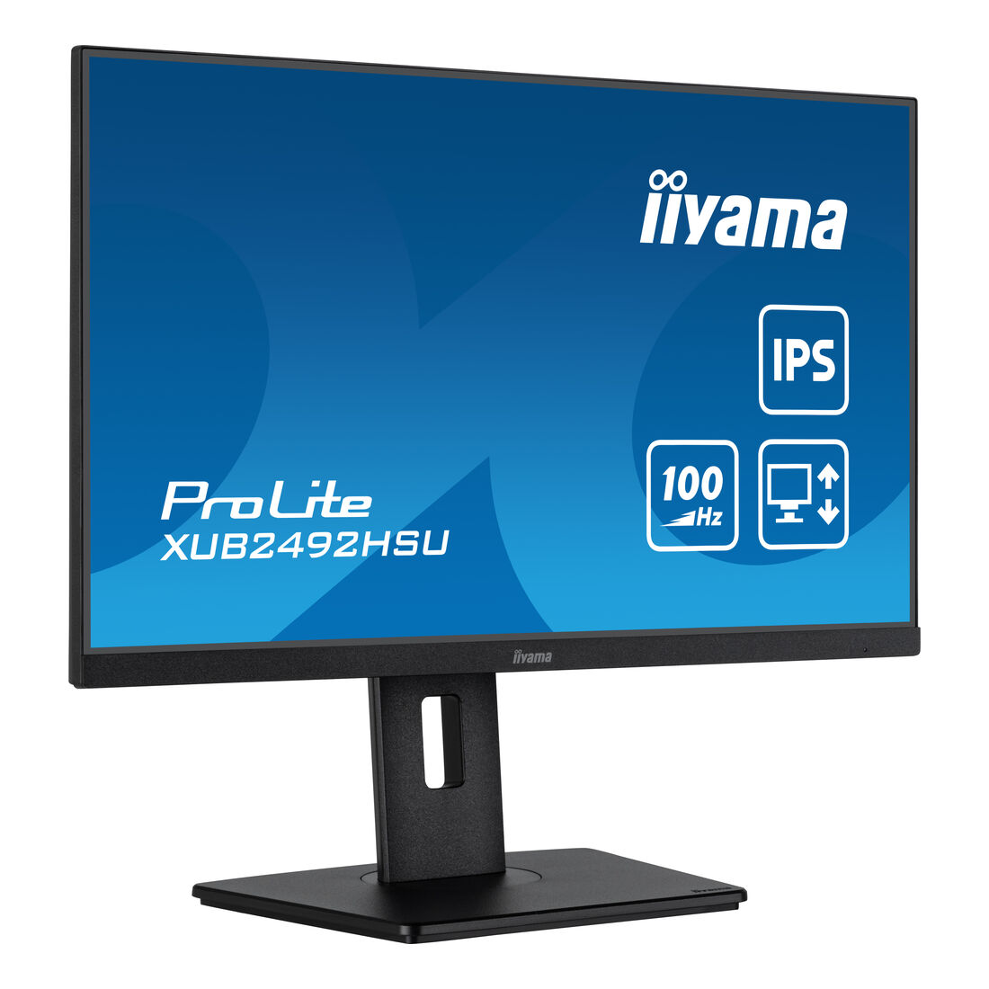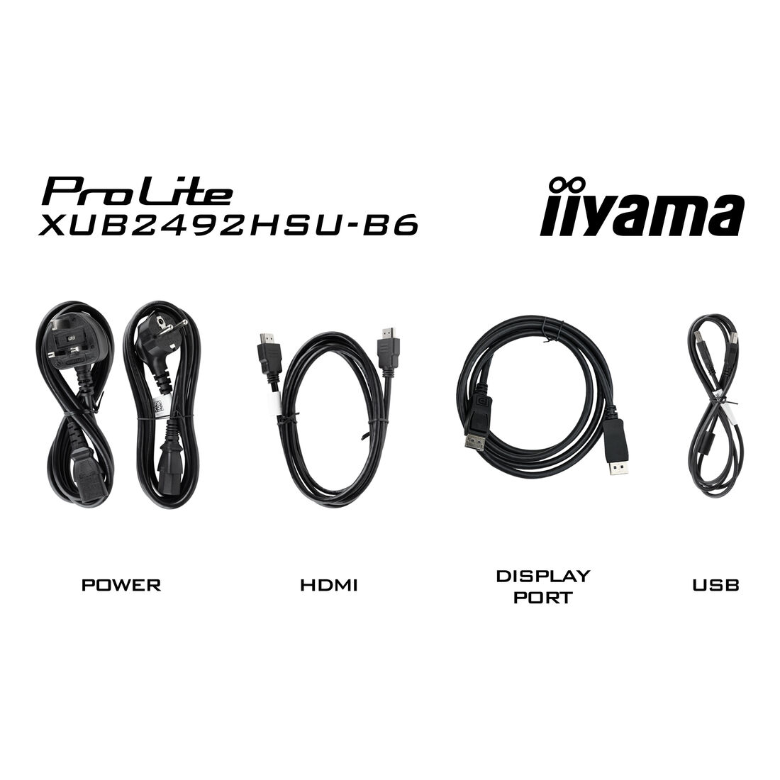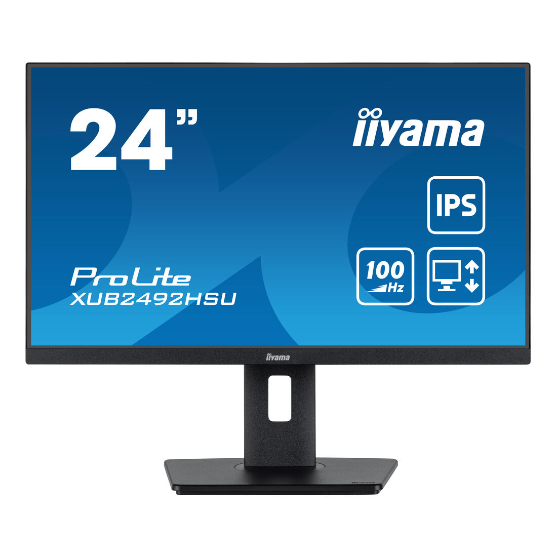 iiyama XUB2492HSU-B6. Dimensioni diagonale schermo: 60,5 cm (23.8″), Risoluzione del display: 1920 x 1080 Pixel, Tipologia HD: Full HD, Tecnologia display: LED, Superficie display: Opaco, Tempo di risposta: 0,4 ms, Rapporto d’aspetto nativo: 16:9, Angolo di visualizzazione (orizzontale): 178°, Angolo di visualizzazione (verticale): 178°. Altoparlanti incorporati. Hub USB integrato, Versione dell’hub USB: 3.2 Gen 1 (3.1 Gen 1). Montaggio standard VESA, Regolazione altezza. Colore del prodotto: Nero