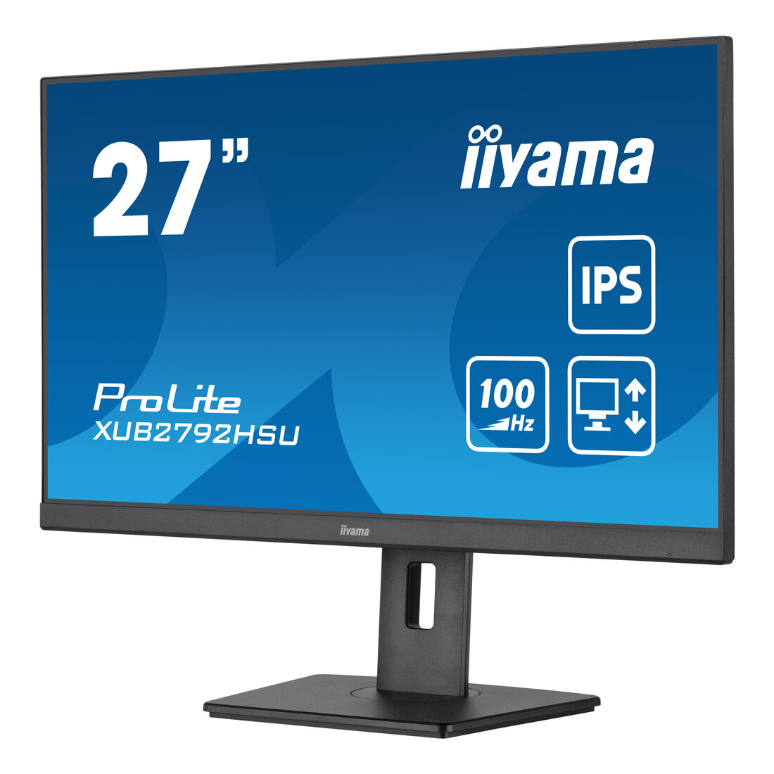 iiyama XUB2792HSU-B6. Dimensioni diagonale schermo: 68,6 cm (27″), Risoluzione del display: 1920 x 1080 Pixel, Tipologia HD: Full HD, Tecnologia display: LED, Superficie display: Opaco, Tempo di risposta: 0,4 ms, Rapporto d’aspetto nativo: 16:9, Angolo di visualizzazione (orizzontale): 178°, Angolo di visualizzazione (verticale): 178°. Altoparlanti incorporati. Hub USB integrato, Versione dell’hub USB: 3.2 Gen 1 (3.1 Gen 1). Montaggio standard VESA, Regolazione altezza. Colore del prodotto: Nero