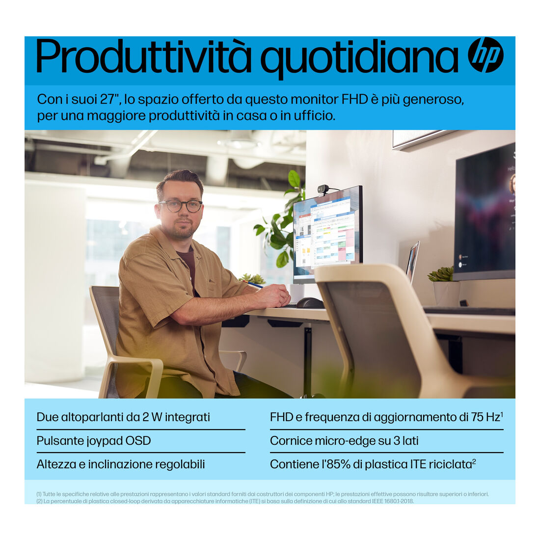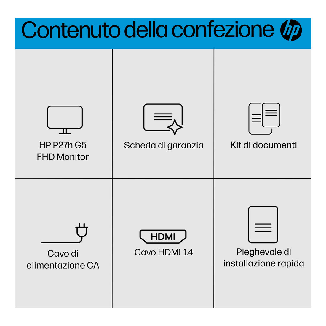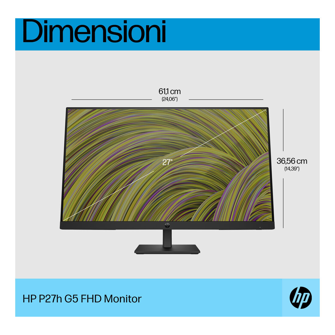 HP P27h G5 FHD Monitor. Dimensioni diagonale schermo: 68,6 cm (27″), Risoluzione del display: 1920 x 1080 Pixel, Tipologia HD: Full HD, Tecnologia display: LCD, Superficie display: Opaco, Tempo di risposta: 5 ms, Rapporto d’aspetto nativo: 16:9, Angolo di visualizzazione (orizzontale): 178°, Angolo di visualizzazione (verticale): 178°. Altoparlanti incorporati. Montaggio standard VESA, Regolazione altezza. Colore del prodotto: Nero