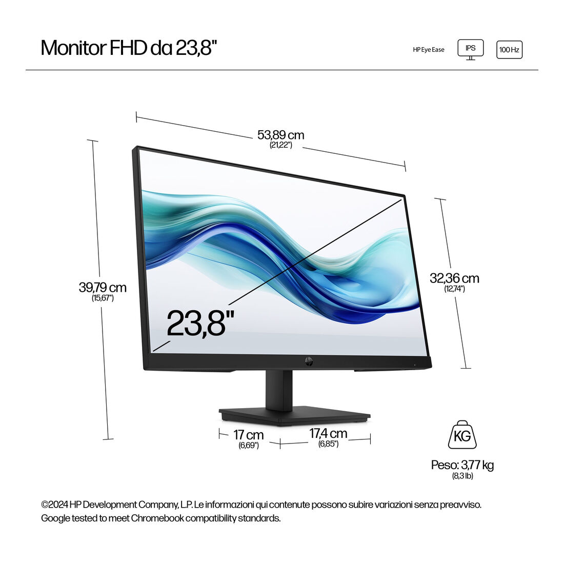 HP Series 3 Pro Monitor serie 3 Pro FHD da 23,8″ – 324pf. Dimensioni diagonale schermo: 60,5 cm (23.8″), Risoluzione del display: 1920 x 1080 Pixel, Tipologia HD: Full HD, Tecnologia display: LCD, Superficie display: Opaco, Tempo di risposta: 5 ms, Rapporto d’aspetto nativo: 16:9, Angolo di visualizzazione (orizzontale): 178°, Angolo di visualizzazione (verticale): 178°. Montaggio standard VESA. Colore del prodotto: Nero