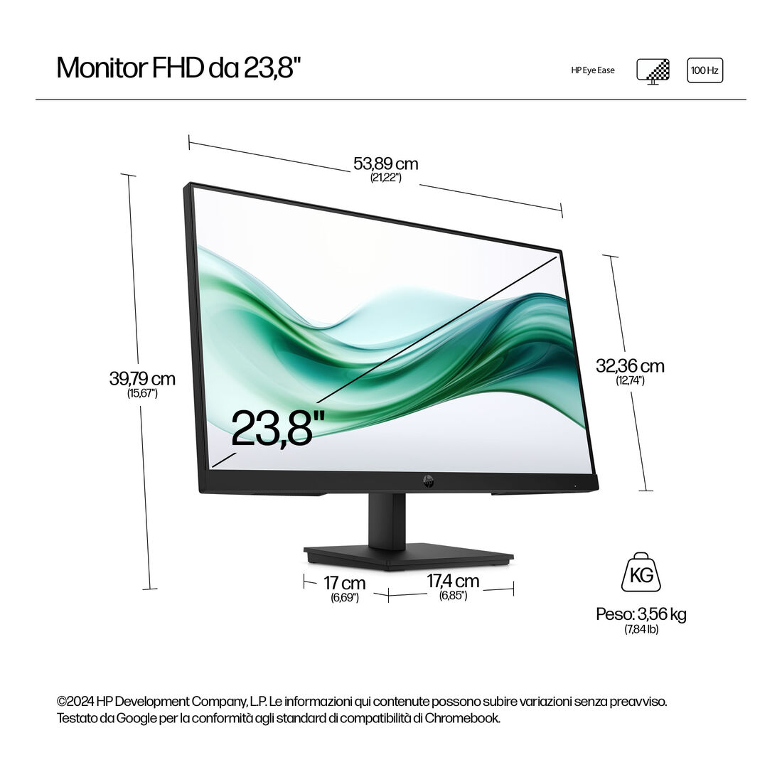 HP Series 3 Pro Monitor serie 3 Pro FHD da 23,8″ – 324pv. Dimensioni diagonale schermo: 60,5 cm (23.8″), Risoluzione del display: 1920 x 1080 Pixel, Tipologia HD: Full HD, Tecnologia display: LCD, Superficie display: Opaco, Tempo di risposta: 5 ms, Rapporto d’aspetto nativo: 16:9, Angolo di visualizzazione (orizzontale): 178°, Angolo di visualizzazione (verticale): 178°. Montaggio standard VESA. Colore del prodotto: Nero