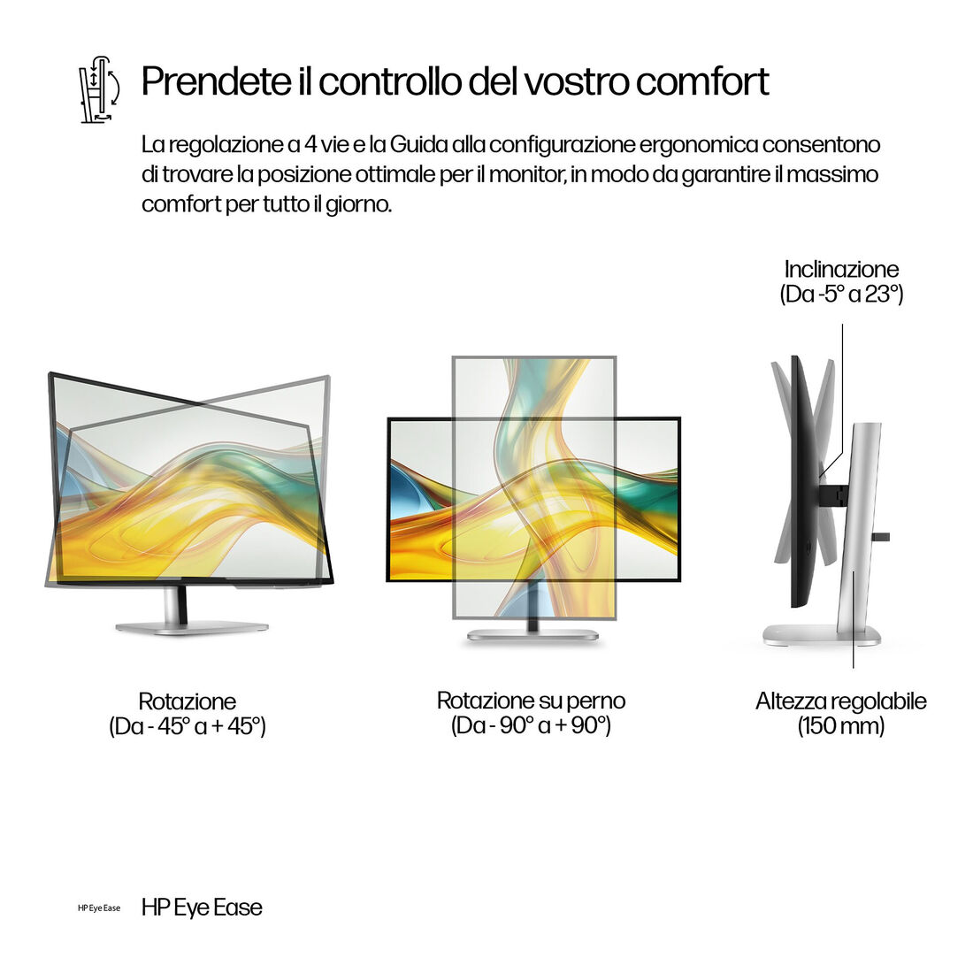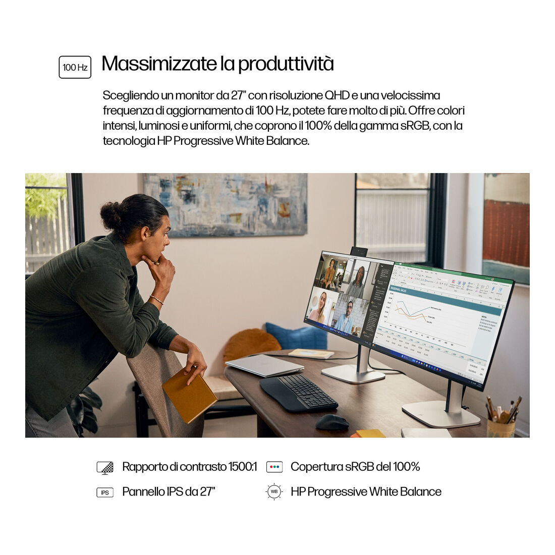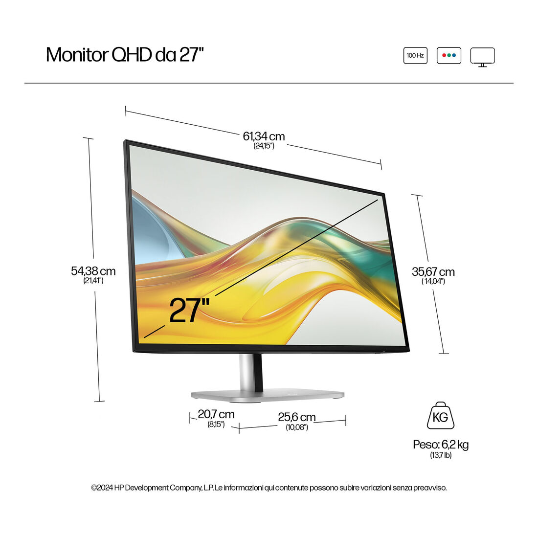 HP Series 5 Monitor serie 5 Pro QHD 27” – 527pq. Dimensioni diagonale schermo: 68,6 cm (27″), Risoluzione del display: 2560 x 1440 Pixel, Tipologia HD: Quad HD, Tecnologia display: LCD, Superficie display: Opaco, Tempo di risposta: 5 ms, Rapporto d’aspetto nativo: 16:9, Angolo di visualizzazione (orizzontale): 178°, Angolo di visualizzazione (verticale): 178°. Hub USB integrato, Versione dell’hub USB: 3.2 Gen 1 (3.1 Gen 1). Montaggio standard VESA, Regolazione altezza. Colore del prodotto: Nero