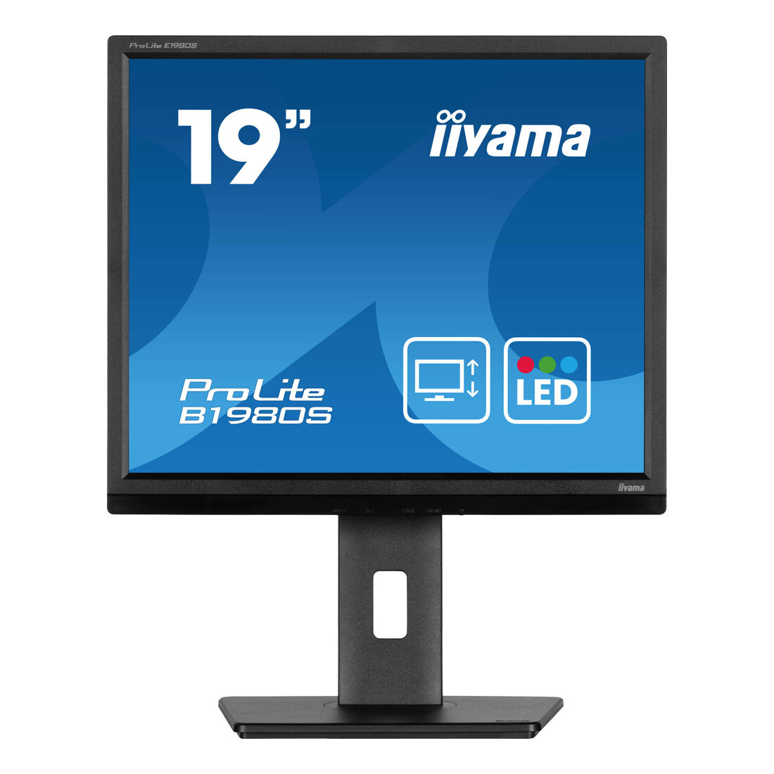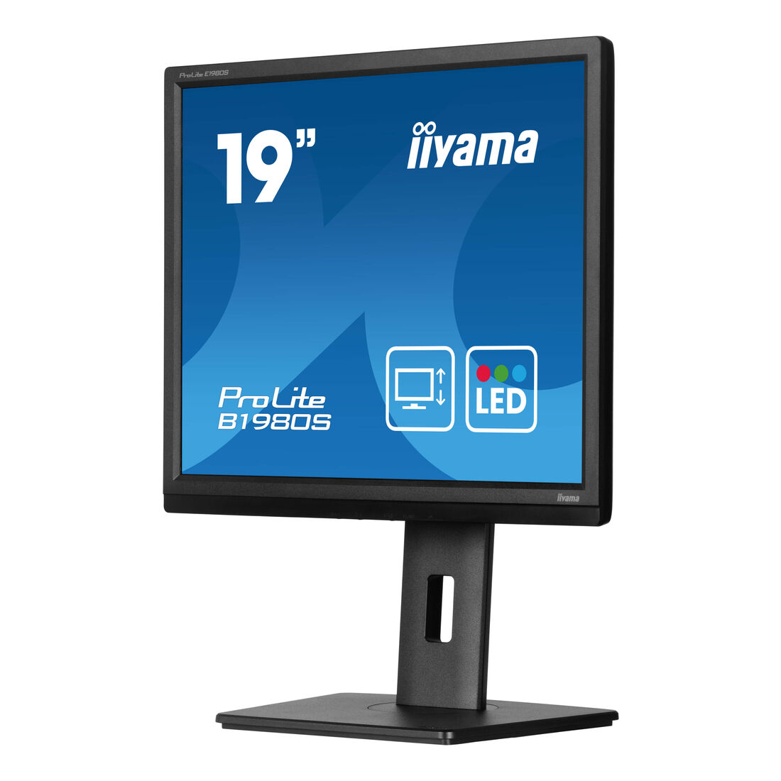iiyama ProLite B1980S-B1. Dimensioni diagonale schermo: 48,3 cm (19″), Risoluzione del display: 1280 x 1024 Pixel, Tipologia HD: VGA, Tecnologia display: LED, Superficie display: Opaco, Tempo di risposta: 3 ms, Rapporto d’aspetto nativo: 5:4, Angolo di visualizzazione (orizzontale): 170°, Angolo di visualizzazione (verticale): 160°. Altoparlanti incorporati. Montaggio standard VESA, Regolazione altezza. Colore del prodotto: Nero