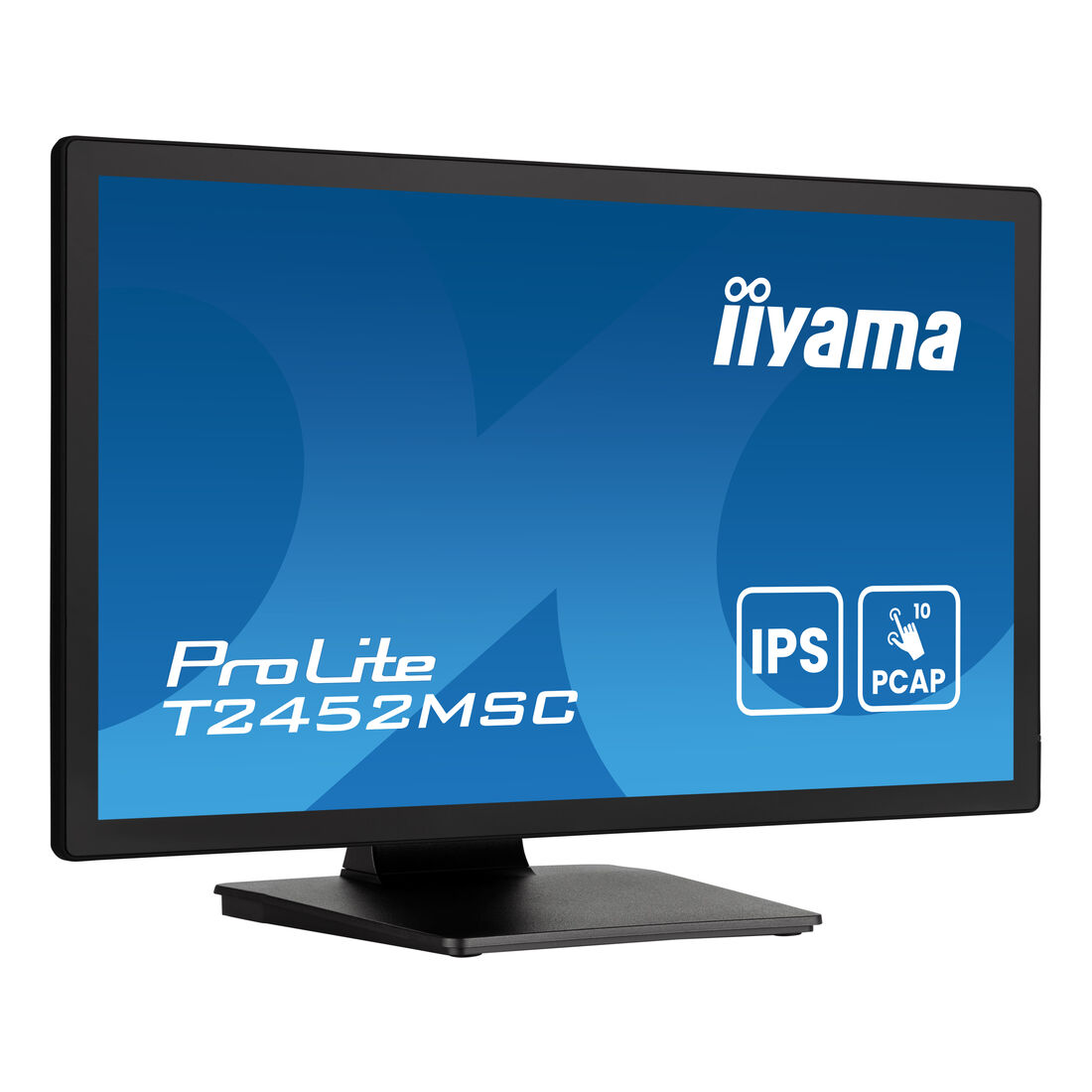 iiyama ProLite T2452MSC-B1AG. Dimensioni diagonale schermo: 60,5 cm (23.8″), Risoluzione del display: 1920 x 1080 Pixel, Tipologia HD: Full HD, Tecnologia display: LED, Tempo di risposta: 5 ms, Rapporto d’aspetto nativo: 16:9. Altoparlanti incorporati. Hub USB integrato, Versione dell’hub USB: 3.2 Gen 1 (3.1 Gen 1). Montaggio standard VESA. Colore del prodotto: Nero