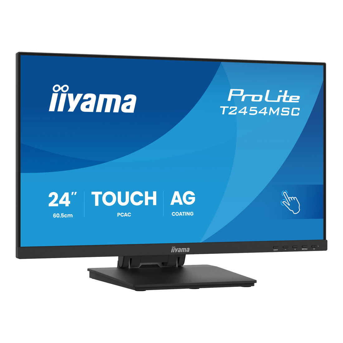 iiyama ProLite T2454MSC-B3AG. Dimensioni diagonale schermo: 60,5 cm (23.8″), Risoluzione del display: 1920 x 1080 Pixel, Tipologia HD: Full HD, Tecnologia display: LED, Tempo di risposta: 4 ms, Rapporto d’aspetto nativo: 16:9, Angolo di visualizzazione (orizzontale): 178°, Angolo di visualizzazione (verticale): 178°. Altoparlanti incorporati. Hub USB integrato, Versione dell’hub USB: 3.2 Gen 1 (3.1 Gen 1). Montaggio standard VESA, Regolazione altezza. Colore del prodotto: Nero