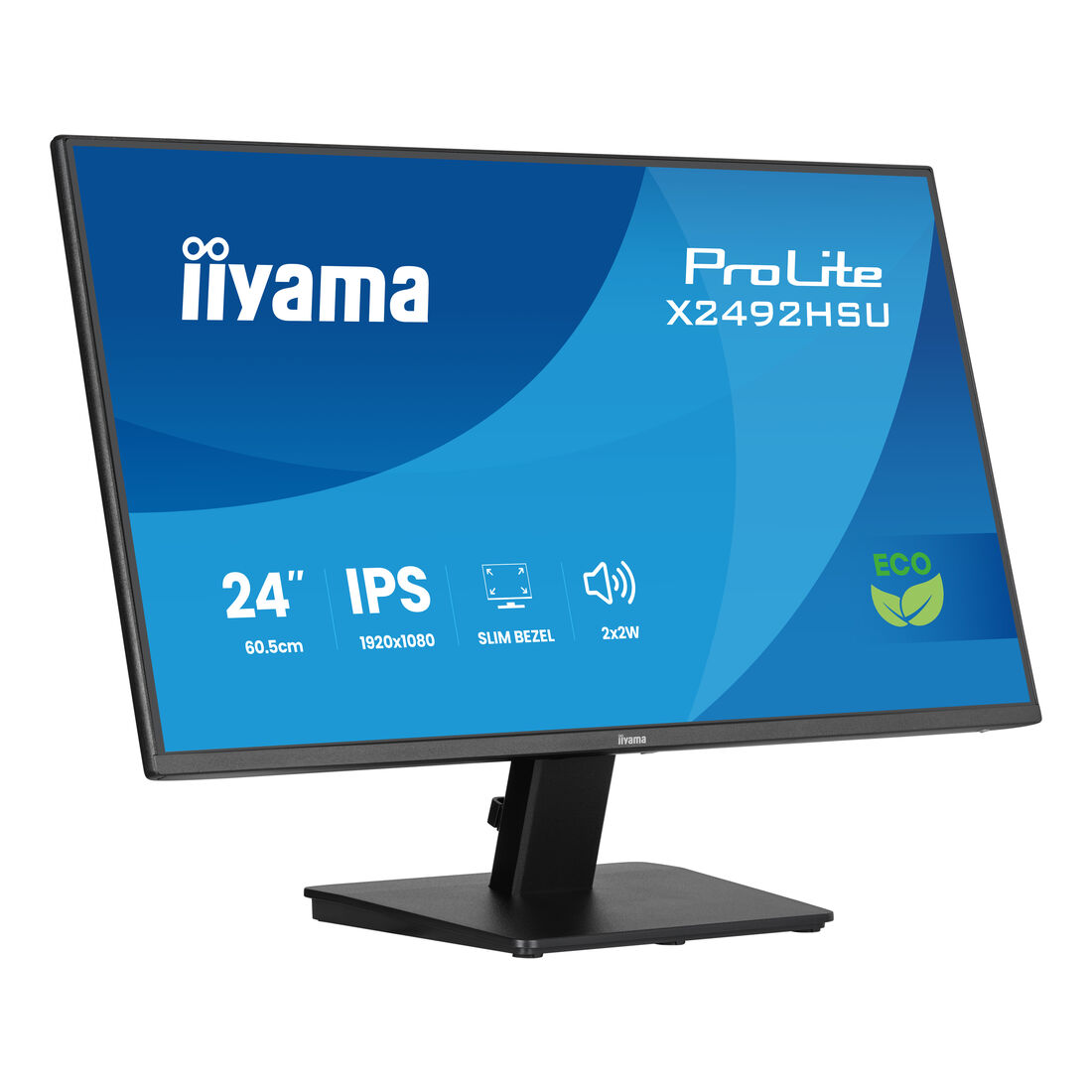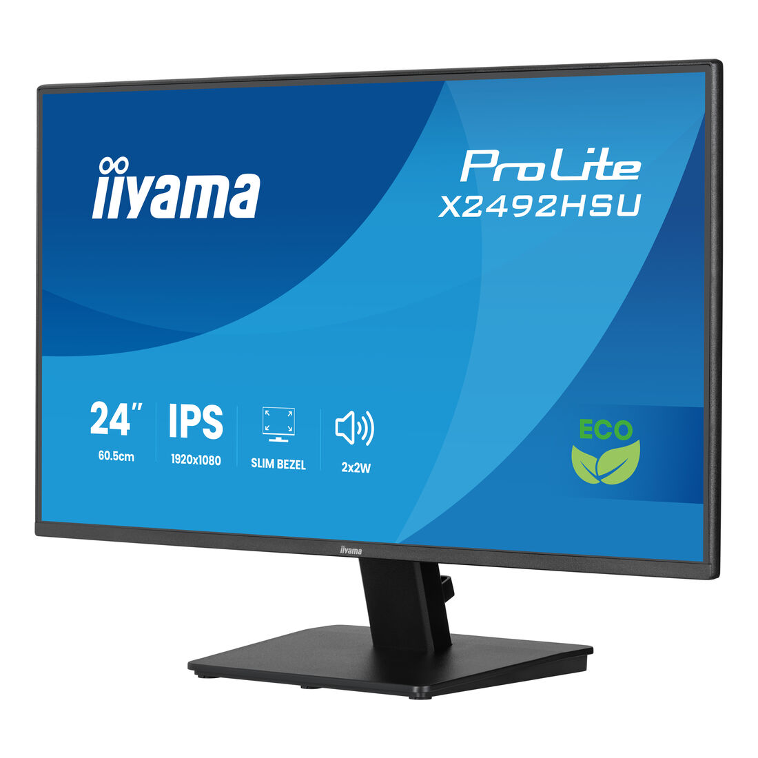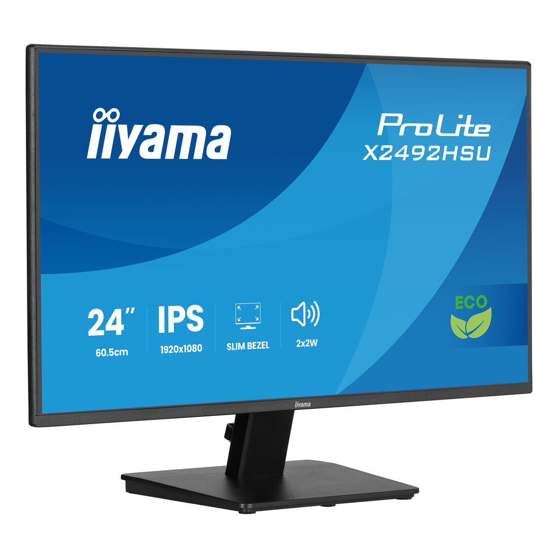 iiyama ProLite X2492HSU-B1. Dimensioni diagonale schermo: 61 cm (24″), Risoluzione del display: 1920 x 1080 Pixel, Tipologia HD: Full HD, Tecnologia display: LED, Superficie display: Opaco, Tempo di risposta: 3 ms, Rapporto d’aspetto nativo: 16:9, Angolo di visualizzazione (orizzontale): 178°, Angolo di visualizzazione (verticale): 178°. Altoparlanti incorporati. Hub USB integrato, Versione dell’hub USB: 3.2 Gen 1 (3.1 Gen 1). Montaggio standard VESA. Colore del prodotto: Nero