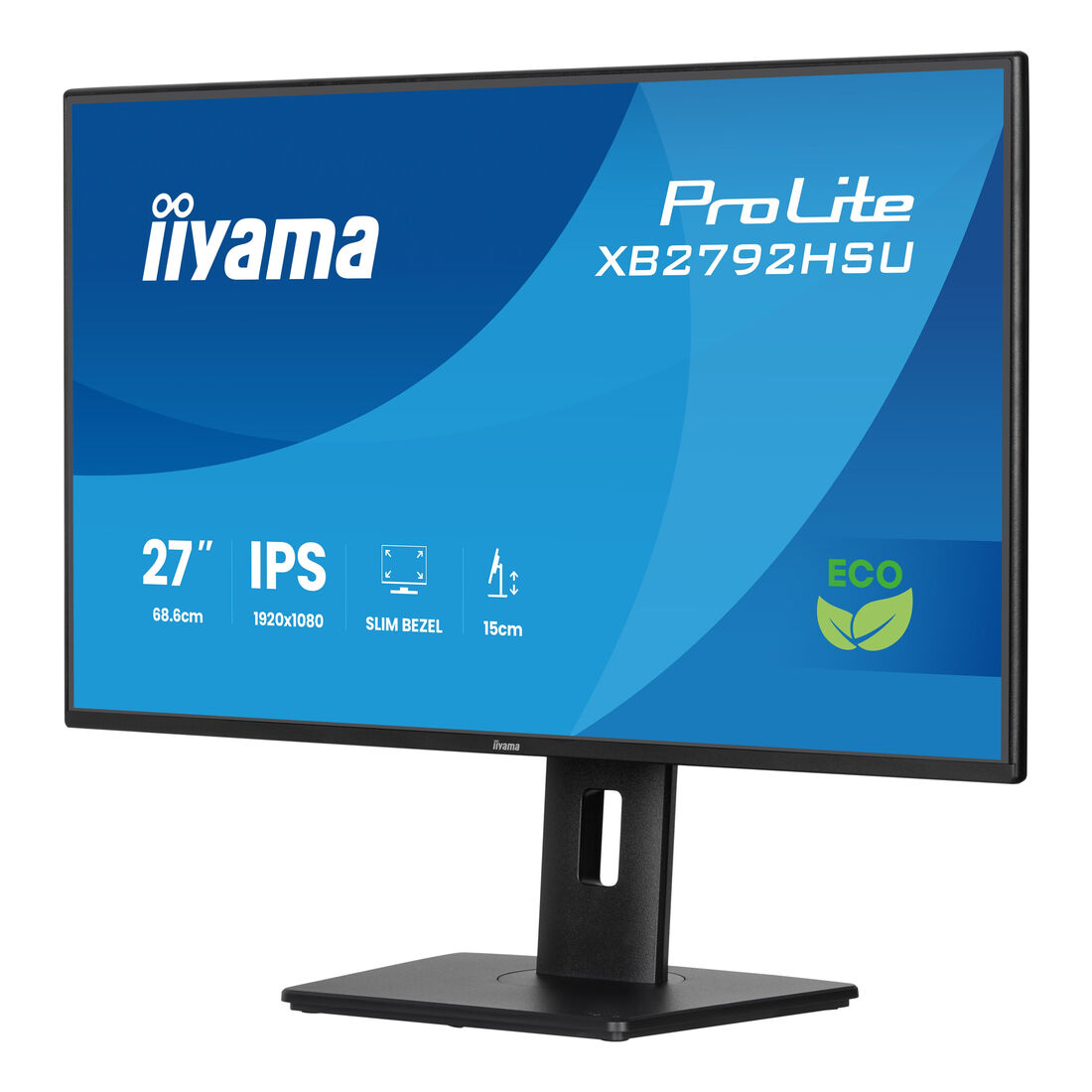 iiyama ProLite XB2792HSU-B1. Dimensioni diagonale schermo: 68,6 cm (27″), Risoluzione del display: 1920 x 1080 Pixel, Tipologia HD: Full HD, Tecnologia display: LED, Superficie display: Opaco, Tempo di risposta: 3 ms, Rapporto d’aspetto nativo: 16:9, Angolo di visualizzazione (orizzontale): 178°, Angolo di visualizzazione (verticale): 178°. Altoparlanti incorporati. Hub USB integrato, Versione dell’hub USB: 3.2 Gen 1 (3.1 Gen 1). Montaggio standard VESA, Regolazione altezza. Colore del prodotto: Nero