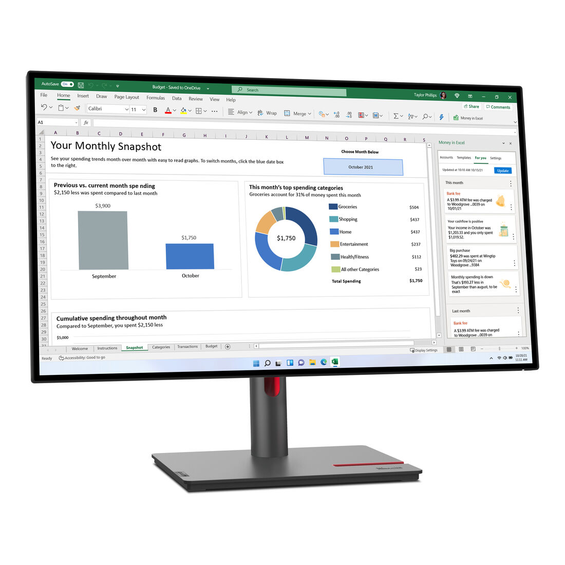 Lenovo ThinkVision P27h-30. Dimensioni diagonale schermo: 68,6 cm (27″), Risoluzione del display: 2560 x 1440 Pixel, Tipologia HD: Quad HD, Tecnologia display: LCD, Tempo di risposta: 6 ms, Rapporto d’aspetto nativo: 16:9, Angolo di visualizzazione (orizzontale): 178°, Angolo di visualizzazione (verticale): 178°. Hub USB integrato. Montaggio standard VESA, Regolazione altezza. Colore del prodotto: Nero