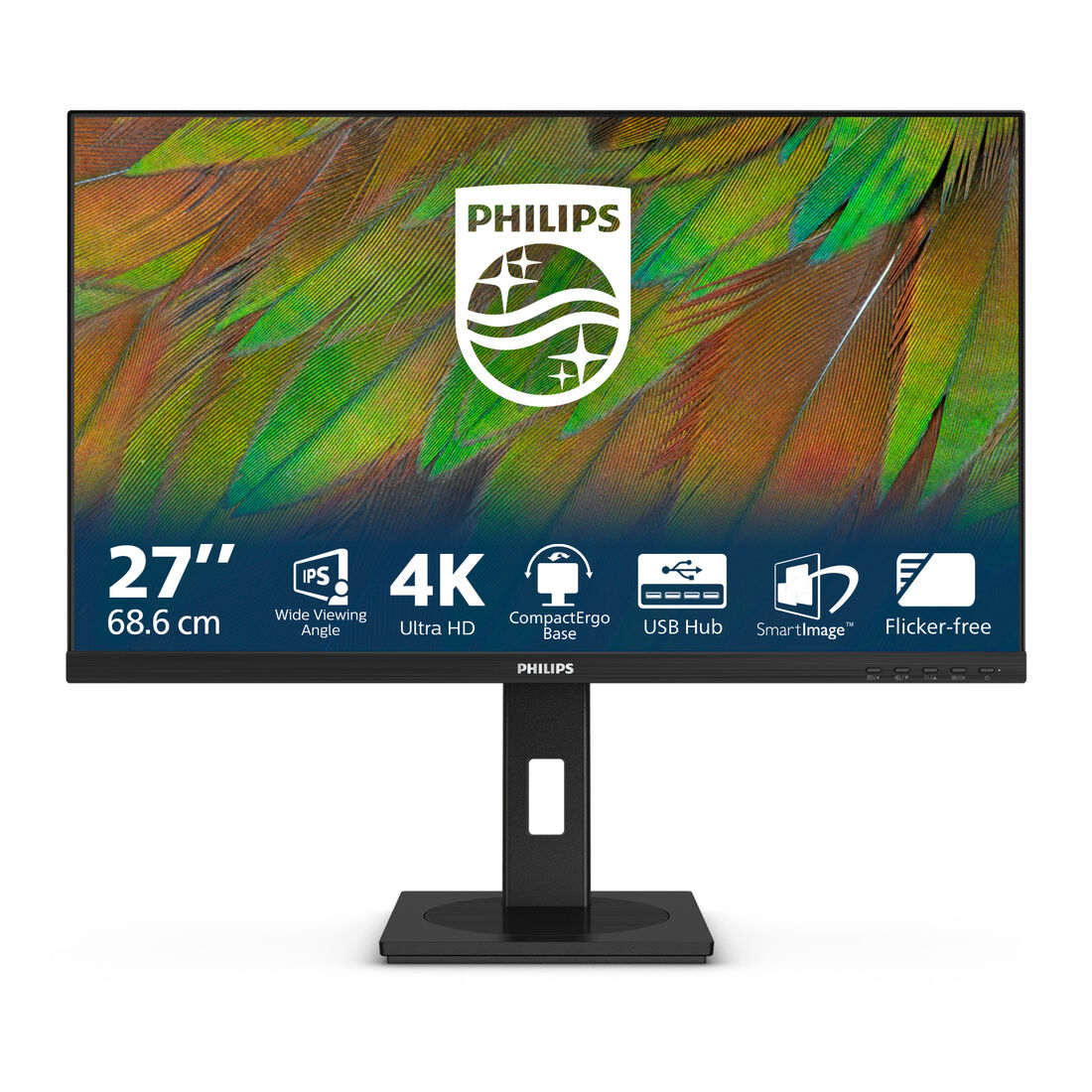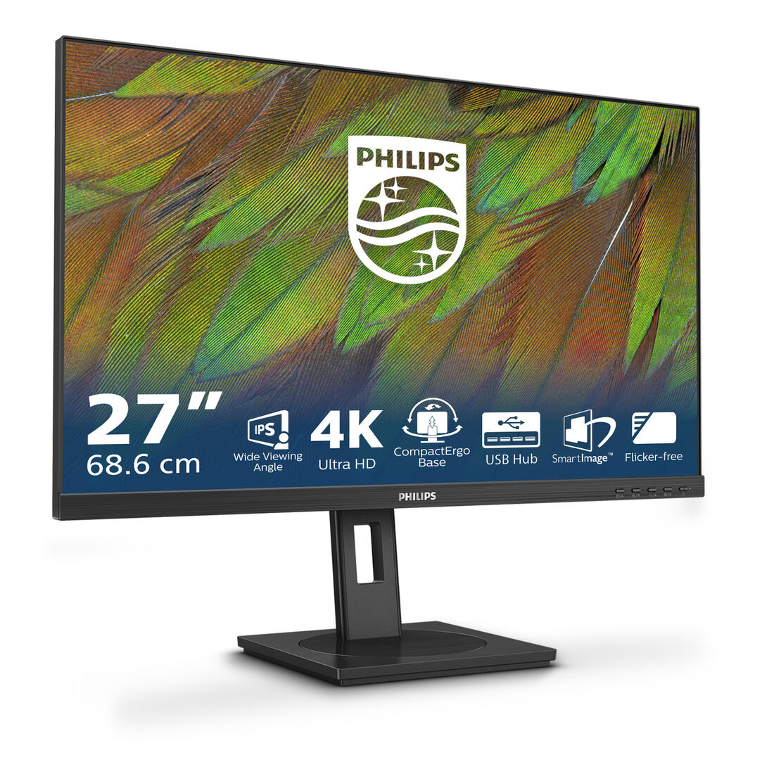 Philips 3000 series 27B1N3800/00. Dimensioni diagonale schermo: 68,6 cm (27″), Risoluzione del display: 3840 x 2160 Pixel, Tipologia HD: 4K Ultra HD, Tecnologia display: LCD, Tempo di risposta: 4 ms, Rapporto d’aspetto nativo: 16:9, Angolo di visualizzazione (orizzontale): 178°, Angolo di visualizzazione (verticale): 178°. Altoparlanti incorporati. Hub USB integrato, Versione dell’hub USB: 3.2 Gen 1 (3.1 Gen 1). Montaggio standard VESA, Regolazione altezza. Colore del prodotto: Nero