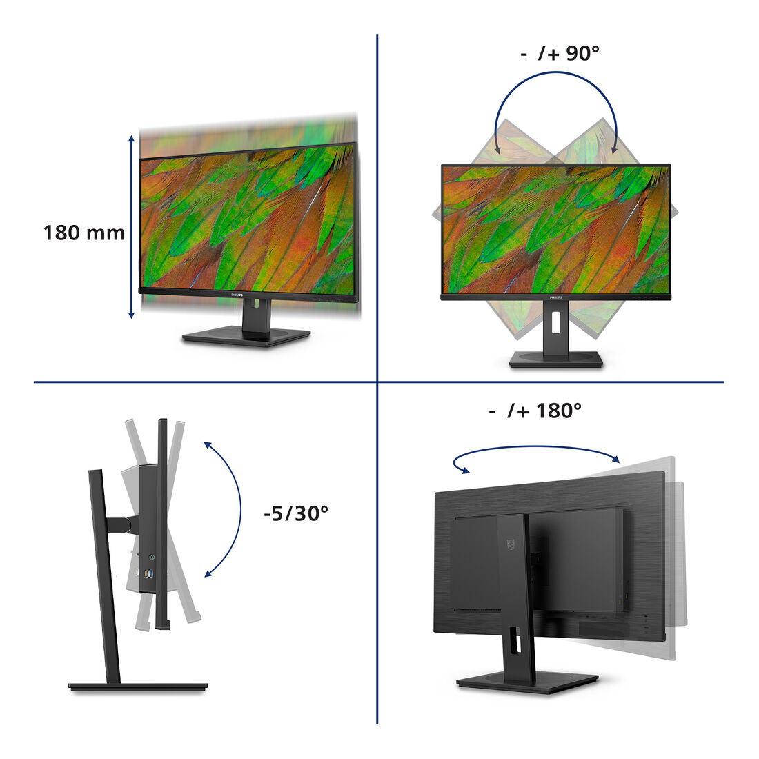 Philips 3000 series 32B1U3900/00. Dimensioni diagonale schermo: 80 cm (31.5″), Risoluzione del display: 3840 x 2160 Pixel, Tipologia HD: 4K Ultra HD, Tecnologia display: LCD, Tempo di risposta: 4 ms, Rapporto d’aspetto nativo: 16:9, Angolo di visualizzazione (orizzontale): 178°, Angolo di visualizzazione (verticale): 178°. Altoparlanti incorporati. Hub USB integrato, Versione dell’hub USB: 3.2 Gen 1 (3.1 Gen 1). Montaggio standard VESA, Regolazione altezza. Colore del prodotto: Nero
