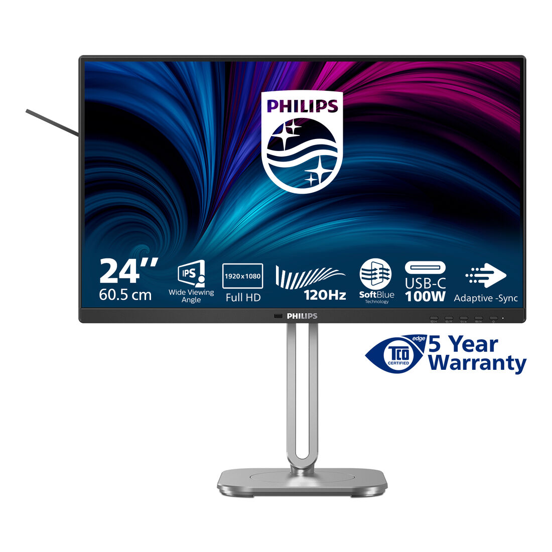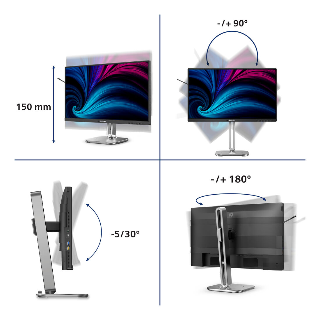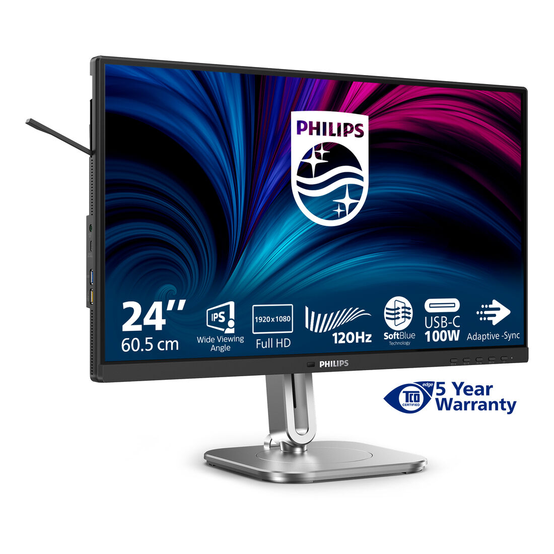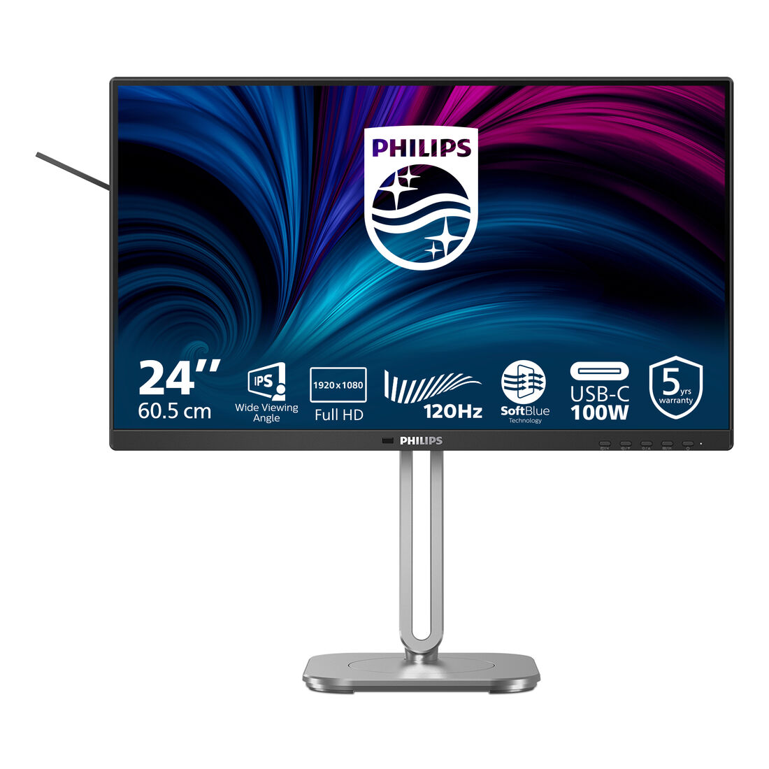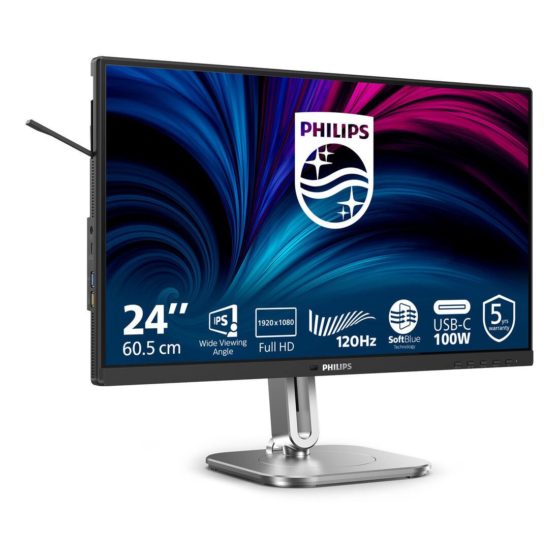 Philips 4000 series 24B2U4301/00. Dimensioni diagonale schermo: 60,5 cm (23.8″), Risoluzione del display: 1920 x 1080 Pixel, Tipologia HD: Full HD, Tecnologia display: LCD, Tempo di risposta: 4 ms, Rapporto d’aspetto nativo: 16:9, Angolo di visualizzazione (orizzontale): 178°, Angolo di visualizzazione (verticale): 178°. Altoparlanti incorporati. Hub USB integrato, Versione dell’hub USB: 3.2 Gen 1 (3.1 Gen 1). Montaggio standard VESA, Regolazione altezza. Colore del prodotto: Grigio