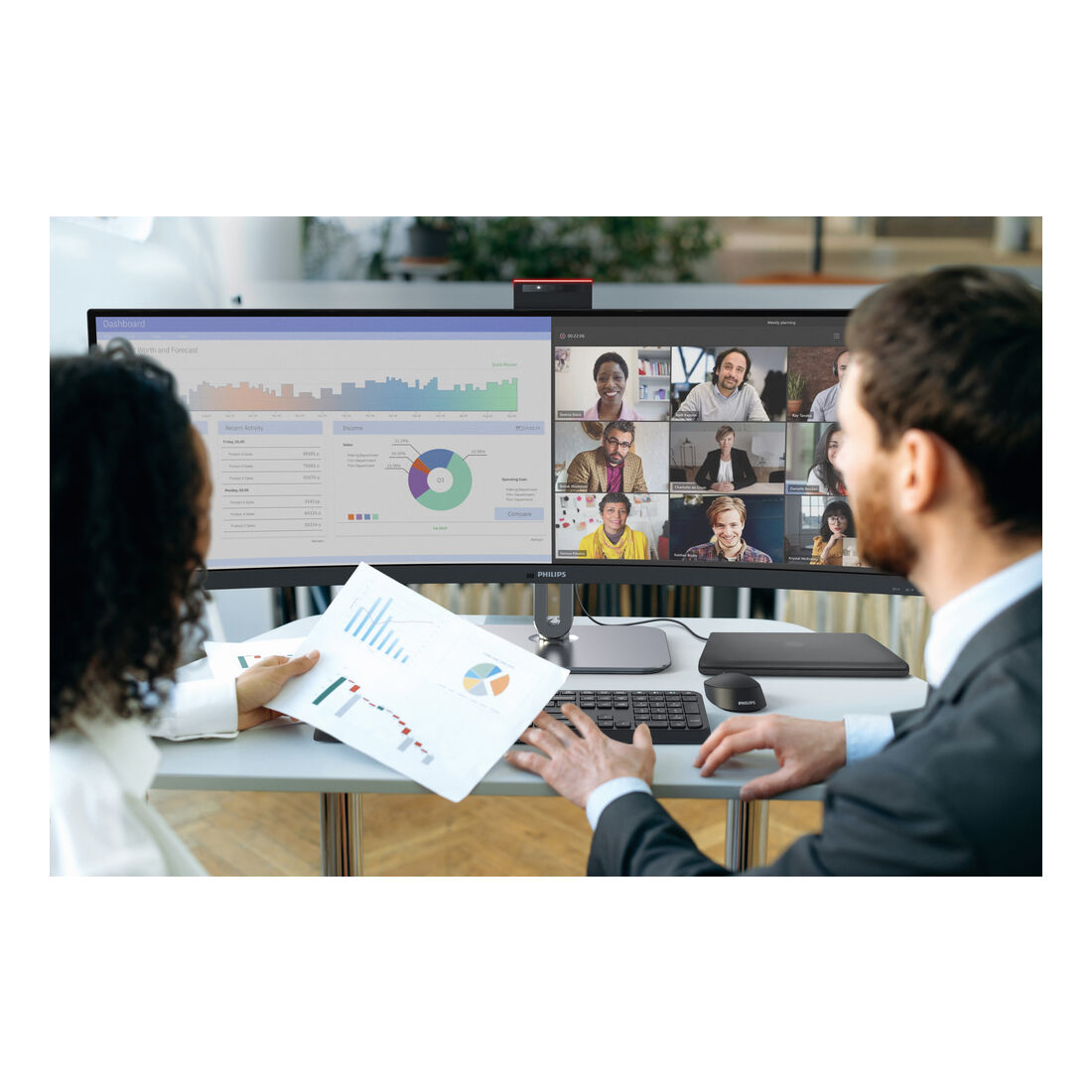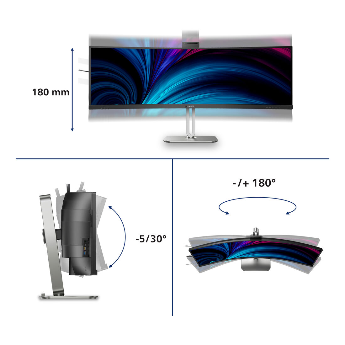 Philips 49B2U6903CH/00. Dimensioni diagonale schermo: 124,5 cm (49″), Risoluzione del display: 5120 x 1440 Pixel, Tipologia HD: Dual QHD, Tecnologia display: LCD, Tempo di risposta: 4 ms, Rapporto d’aspetto nativo: 32:9, Angolo di visualizzazione (orizzontale): 178°, Angolo di visualizzazione (verticale): 178°. Altoparlanti incorporati. Hub USB integrato, Versione dell’hub USB: 3.2 Gen 2 (3.1 Gen 2). Montaggio standard VESA, Regolazione altezza. Colore del prodotto: Grigio