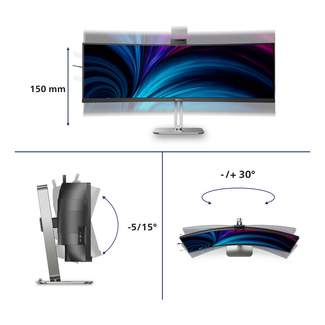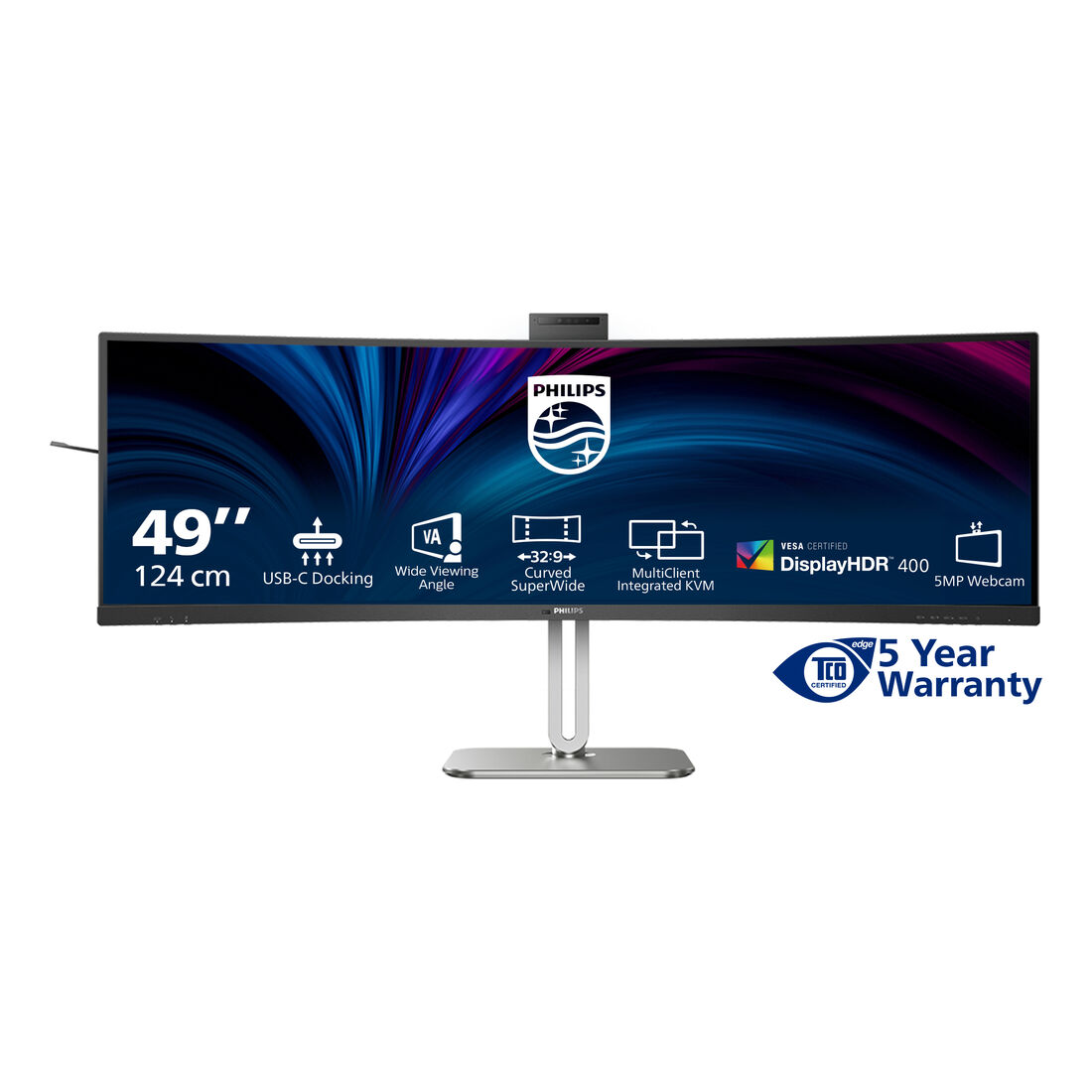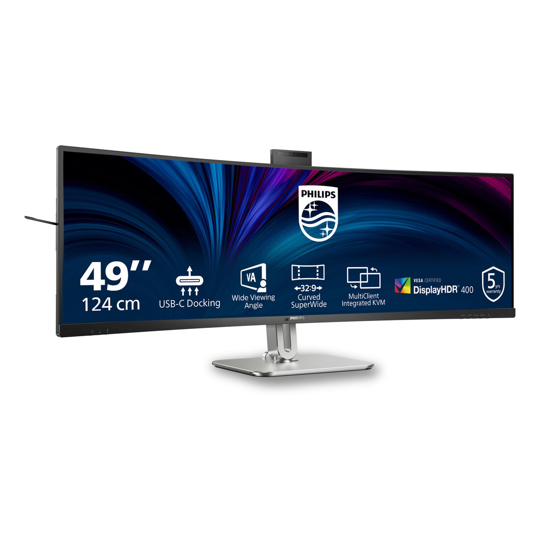 Philips 5000 series 49B2U5900CH/00. Dimensioni diagonale schermo: 124 cm (48.8″), Risoluzione del display: 5120 x 1440 Pixel, Tipologia HD: Dual QHD, Tecnologia display: LCD, Tempo di risposta: 4 ms, Rapporto d’aspetto nativo: 32:9, Angolo di visualizzazione (orizzontale): 178°, Angolo di visualizzazione (verticale): 178°. Altoparlanti incorporati. Hub USB integrato, Versione dell’hub USB: 3.2 Gen 1 (3.1 Gen 1). Montaggio standard VESA, Regolazione altezza. Colore del prodotto: Nero