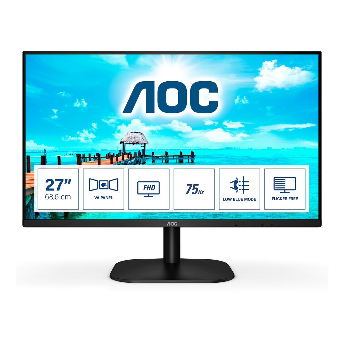 AOC 27B2DM. Dimensioni diagonale schermo: 68,6 cm (27″), Risoluzione del display: 1920 x 1080 Pixel, Tipologia HD: Full HD, Tempo di risposta: 4 ms, Rapporto d’aspetto nativo: 16:9, Angolo di visualizzazione (orizzontale): 178°, Angolo di visualizzazione (verticale): 178°. Montaggio standard VESA. Colore del prodotto: Nero