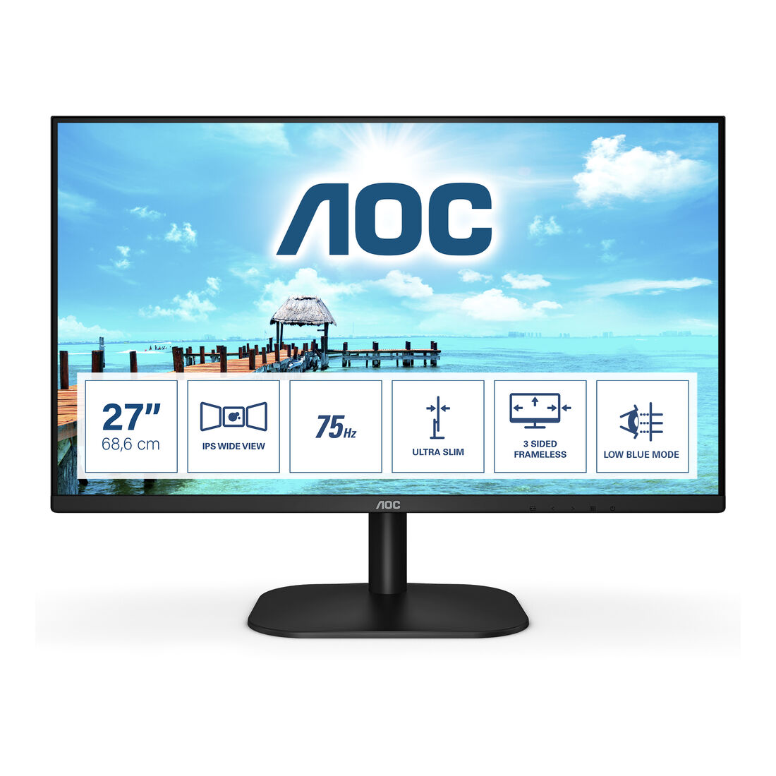 AOC B2 27B2H/EU. Dimensioni diagonale schermo: 68,6 cm (27″), Risoluzione del display: 1920 x 1080 Pixel, Tipologia HD: Full HD, Tecnologia display: LED, Superficie display: Opaco, Tempo di risposta: 4 ms, Rapporto d’aspetto nativo: 16:9, Angolo di visualizzazione (orizzontale): 178°, Angolo di visualizzazione (verticale): 178°. Montaggio standard VESA. Colore del prodotto: Nero